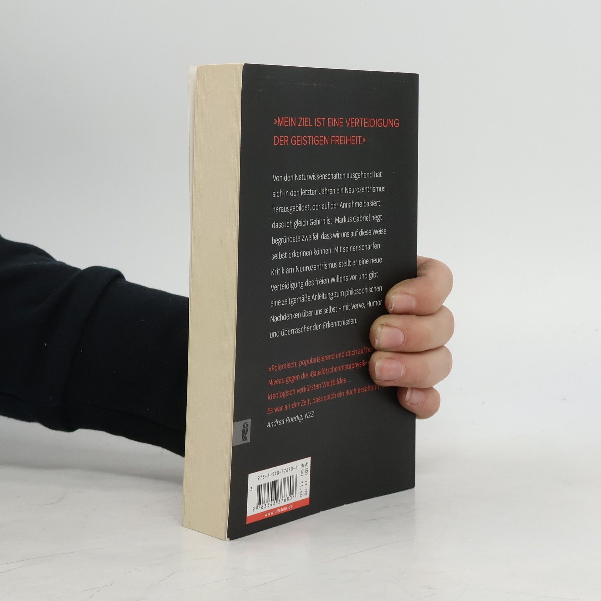 Von den Naturwissenschaften ausgehend, hat sich in den letzten Jahren ein Neurozentrismus herausgebildet, der auf der Annahme basiert, dass Ich gleich Gehirn ist. Markus Gabriel hegt begründete Zweifel, dass wir uns auf diese Weise selbst erkennen können. Mit seiner scharfen Kritik am Neurozentrismus stellt er eine neue Verteidigung des freien Willens vor und gibt eine zeitgemäße Anleitung zum philosophischen Nachdenken über uns selbst — mit Verve, Humor und überraschenden Erkenntnissen.