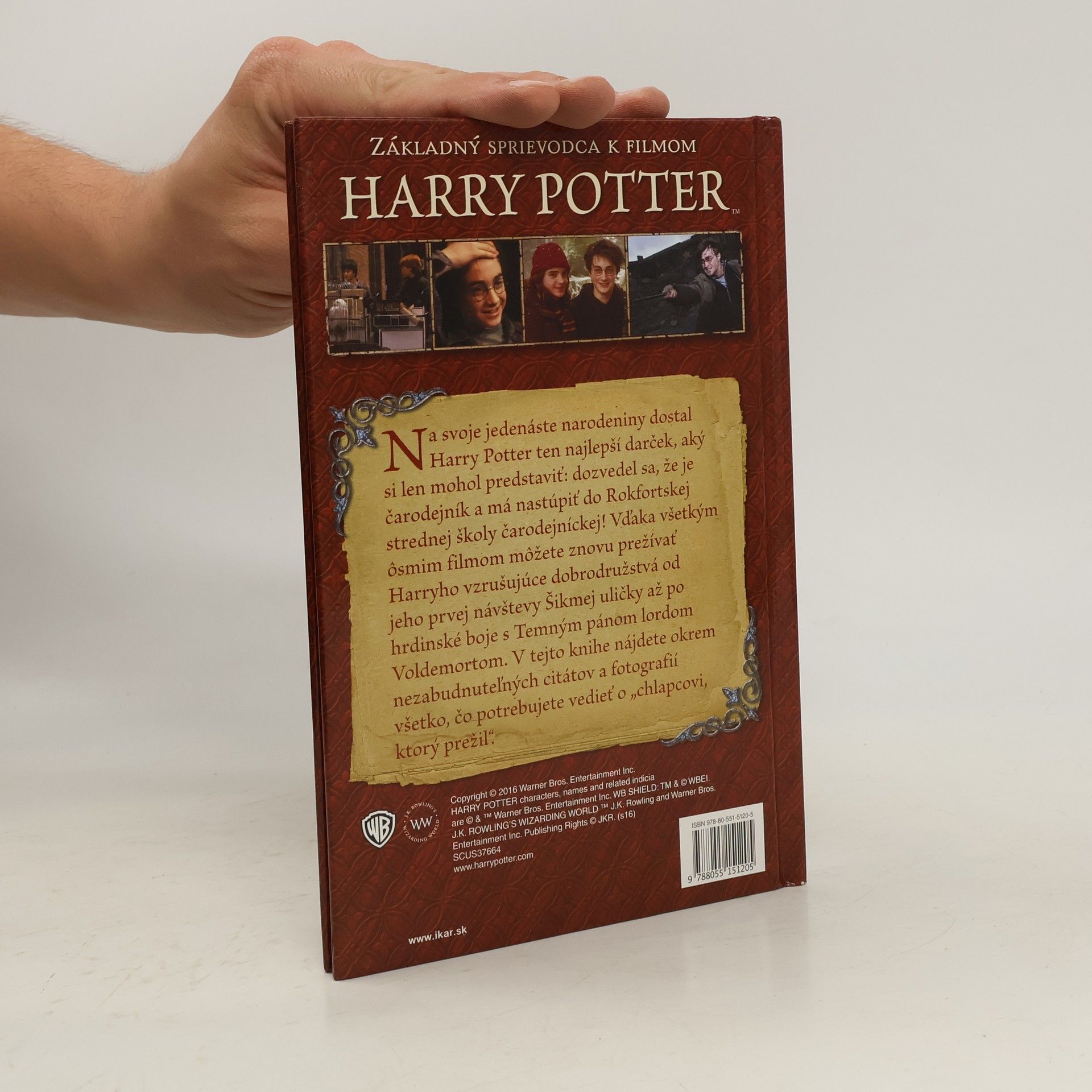 Na svoje jedenáste narodeniny dostal Harry Potter ten najlepší darček, aký si mohol predstaviť: dozvedel sa, že je čarodejník a má nastúpiť do Rokfortskej strednej školy čarodejníckej! Vďaka všetkým ôsmim filmom môžete znovu prežívať Harryho vzrušujúce dobrodružstvá od jeho prvej návštevy Šikmej uličky až po hrdinské boje s Temným pánom lordom Voldemortom. V tejto knihe nájdete okrem nezabudnuteľných citátov a fotografií všetko, čo potrebujete vedieť o „chlapcovi, ktorý prežil".