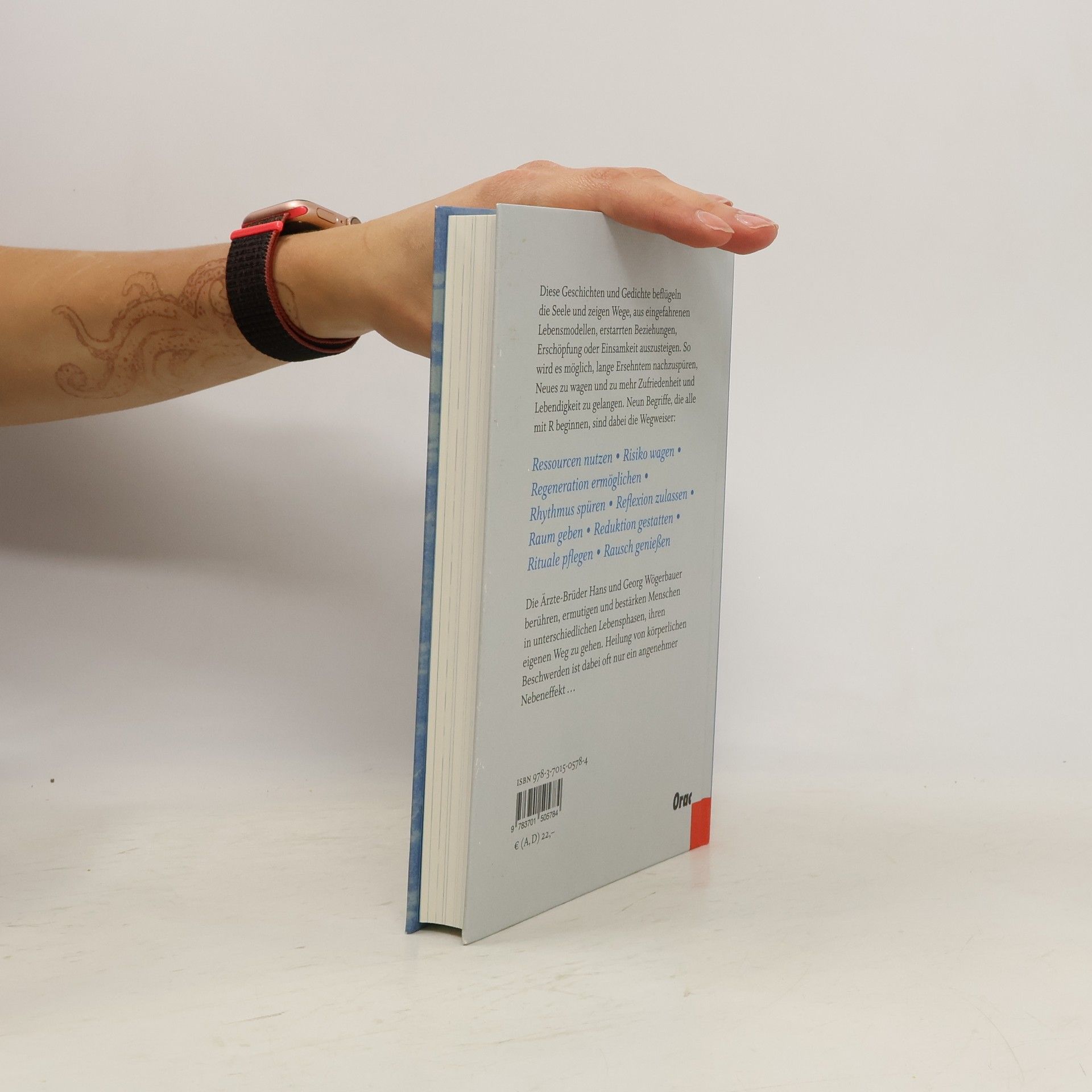 Die Ärzte-Brüder Hans und Georg Wögerbauer beflügeln mit ihren Geschichten und Gedichten die Seele und zeigen Wege, aus eingefahrenen Lebensmodellen, erstarrten Beziehungen, Erschöpfung oder Einsamkeit auszusteigen. So wird es möglich, lange Ersehntem nachzuspüren, Neues zu wagen und zu mehr Zufriedenheit und Lebendigkeit zu gelangen. Neun Wörter, die alle mit R beginnen, sind dabei die Wegweiser: Ressourcen nutzen • Risiko wagen • Regeneration ermöglichen • Rhythmus spüren • Reflexion zulassen • Raum geben • Reduktion gestatten • Rituale pflegen • Rausch genießen Die Geschichten und Gedichte der beiden Allgemeinmediziner und Psychotherapeuten berühren, ermutigen und bestärken Menschen in unterschiedlichen Lebensphasen, ihren eigenen Weg zu gehen.
