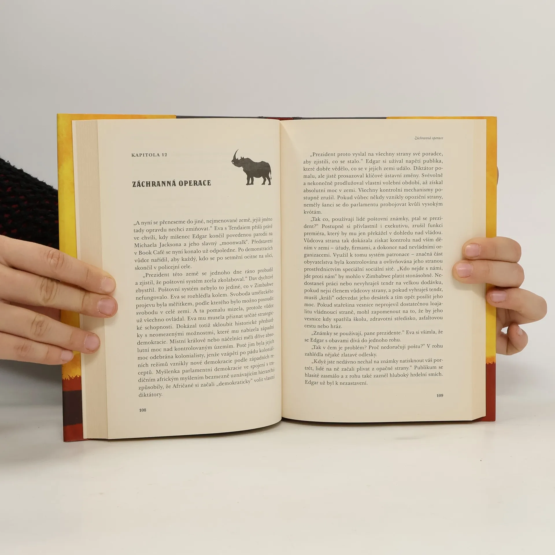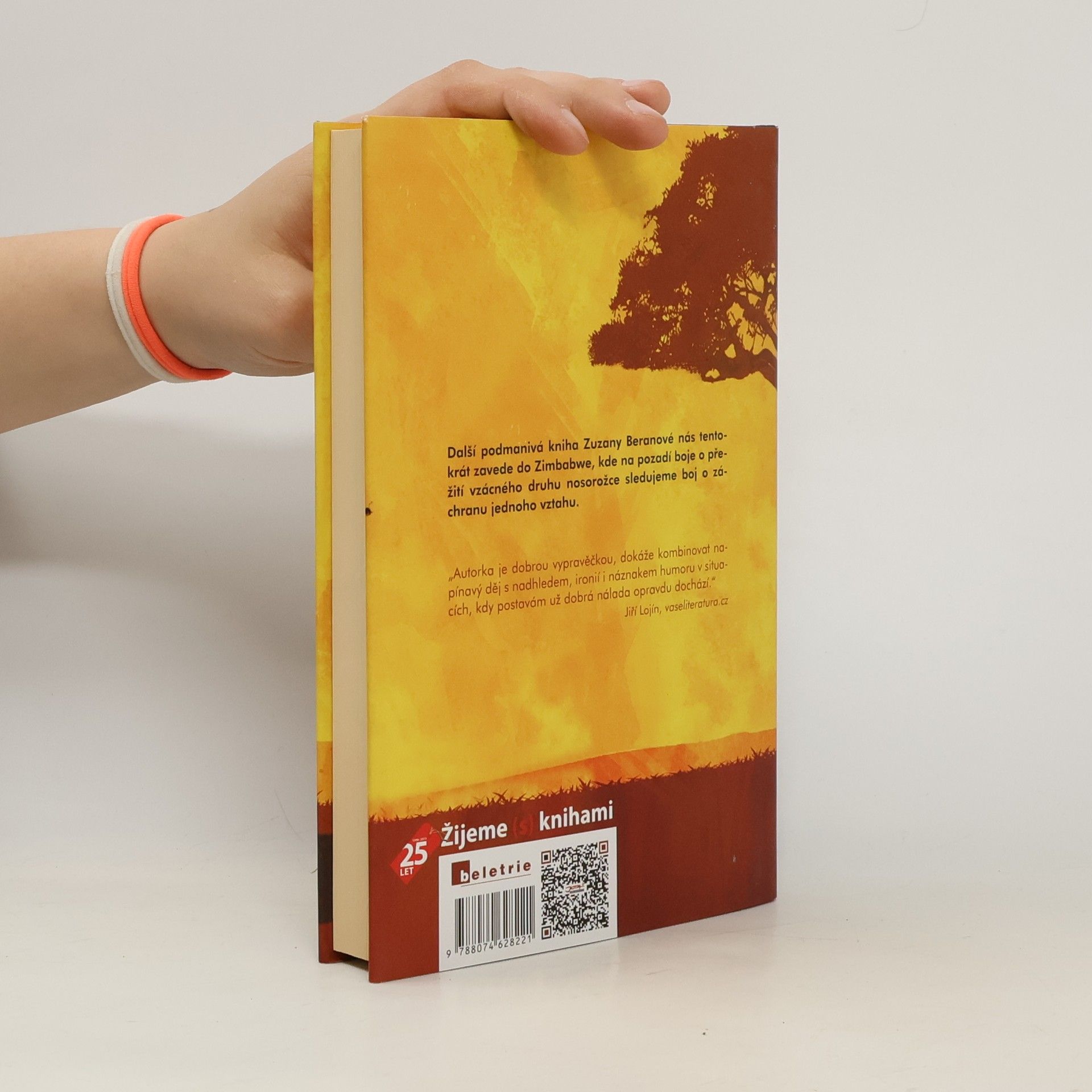 Eva přijíždí do Zimbabwe se svým manželem Vladimírem, ošetřovatelem zvířat, který sem převáží poslední zdravý pár vzácných nosorožců bílých, jimž hrozí vyhynutí. Afrika je poslední záchranou také pro Evu, která si od exotického dobrodružství slibuje vyřešení svých problémů. Vladimír je však zcela pohlcen prací. V době epidemie cholery se Eva při pomoci nemocným sama nakazí, život jí zachrání místní lékař a z původně „profesionálního“ vztahu se nepozorovaně stává milenecký poměr. Vladimír si až příliš pozdě uvědomí, že Evu nenávratně ztratil. Balí si nejnutnější věci, včetně zbraně, a odhodlává se k absurdnímu plánu, který je v rozporu se vším, čemu doposud věřil. Dává mu však naději, že zachrání jak nosorožce, tak svůj vztah. Eva se však již dostala do bodu, z něhož není návratu. Další podmanivá kniha Zuzany Beranové nás tentokrát zavede do Zimbabwe, kde na pozadí boje o přežití vzácného druhu nosorožce sledujeme boj o záchranu jednoho vztahu.