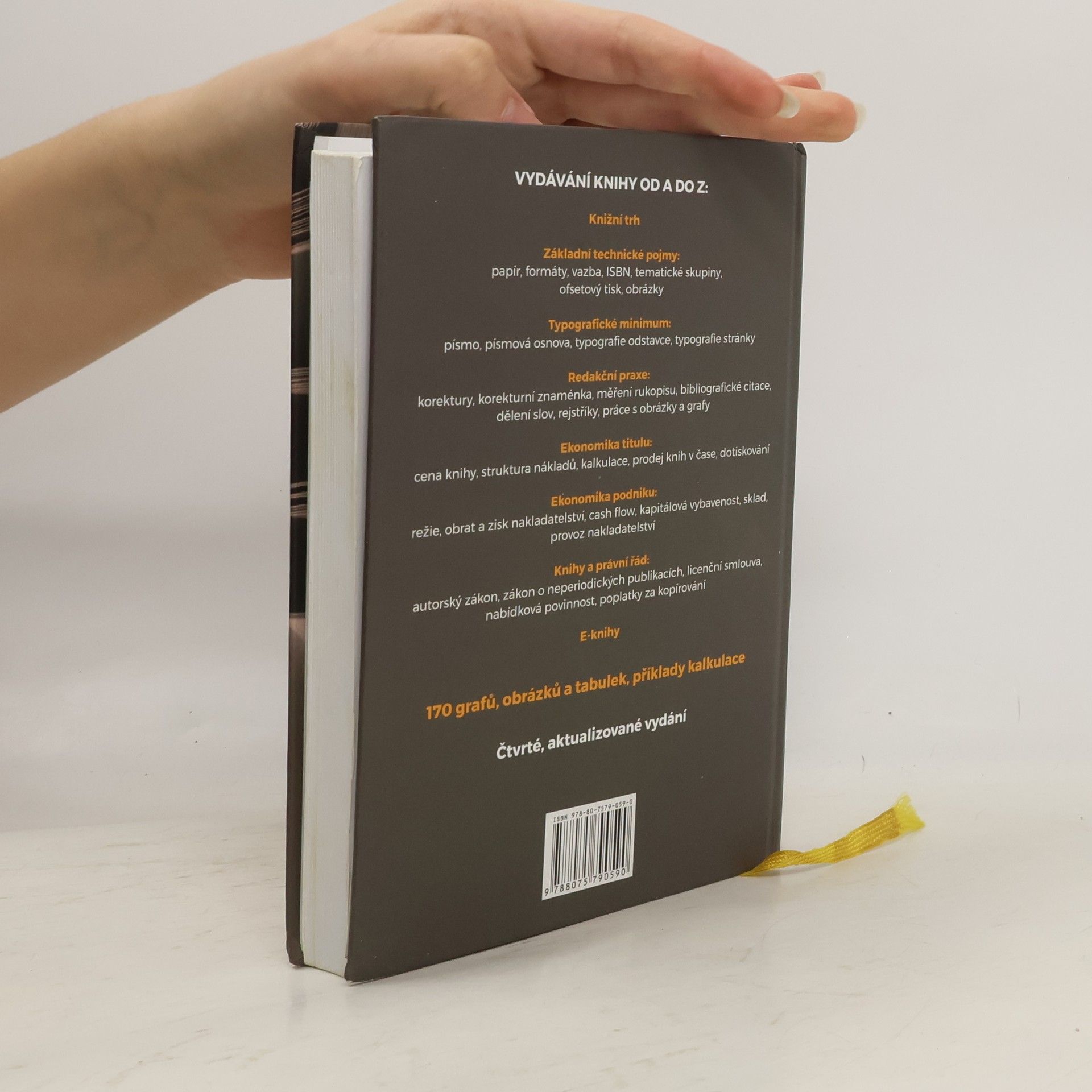 Čtvrté, doplněné a aktualizované vydání úspěšné příručky, nepostradatelné pro každého, kdo se zabývá vydáváním či redakcí knih. Kniha popisuje nejrůznější aspekty přípravy rukopisu, jeho technického zpracování, ekonomického posouzení, autorsko-právního zajištění a umístění na trhu. Nově je přidána kapitola o e-knihách. Je proto užitečná rovněž pro každého, kdo se podrobněji zajímá o to, jak vzniká kniha, o ekonomické či právní otázky, které jsou s vydáváním knih spojené. Obsahuje na 170 grafů, obrázků a tabulek, jakož i řadu příkladů.