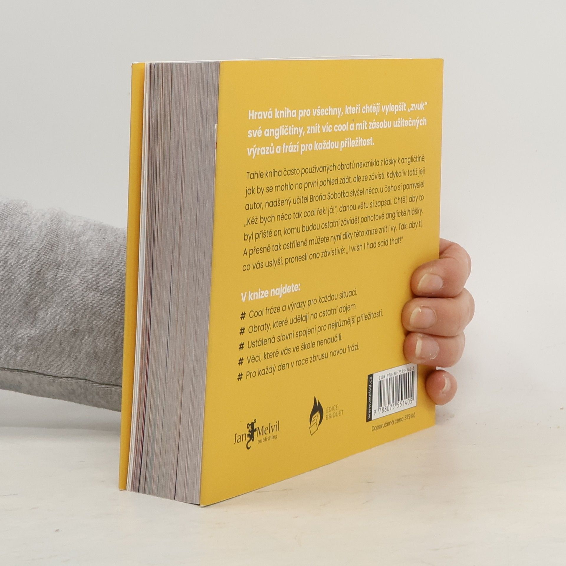 I wish I had said that! — Kéž bych to byl řekl! … takhle znělo jediné kritérium pro výběr 365 cool anglických frází a výrazů, které v této knize najdete. Broňa, nadšený učitel angličtiny z Brna, autor titulu Zamilujte se do angličtiny, přidává do svého knižního portfolia neodolatelný doplněk pro každého uživatele tohoto jazyka. Téměř rok vybíral se svým kamarádem, studujícím toho času v USA, často užívané fráze, idiomy či ustálená rčení, jejichž význam byste s pouhou znalostí jednotlivých slovíček nerozklíčovali. Výsledkem je jedna cool fráze pro každý den v roce, takže až za 365 dní pohlédnete na svůj pokrok, tak budete i díky připojené online cvičebnici v užívání i porozumění angličtiny o 365 frází protřelejší. Knihou vás doprovodí zábavné grafické zpracování Martiny Lagové, postavička malého Broni a ukázkové užití dané fráze.