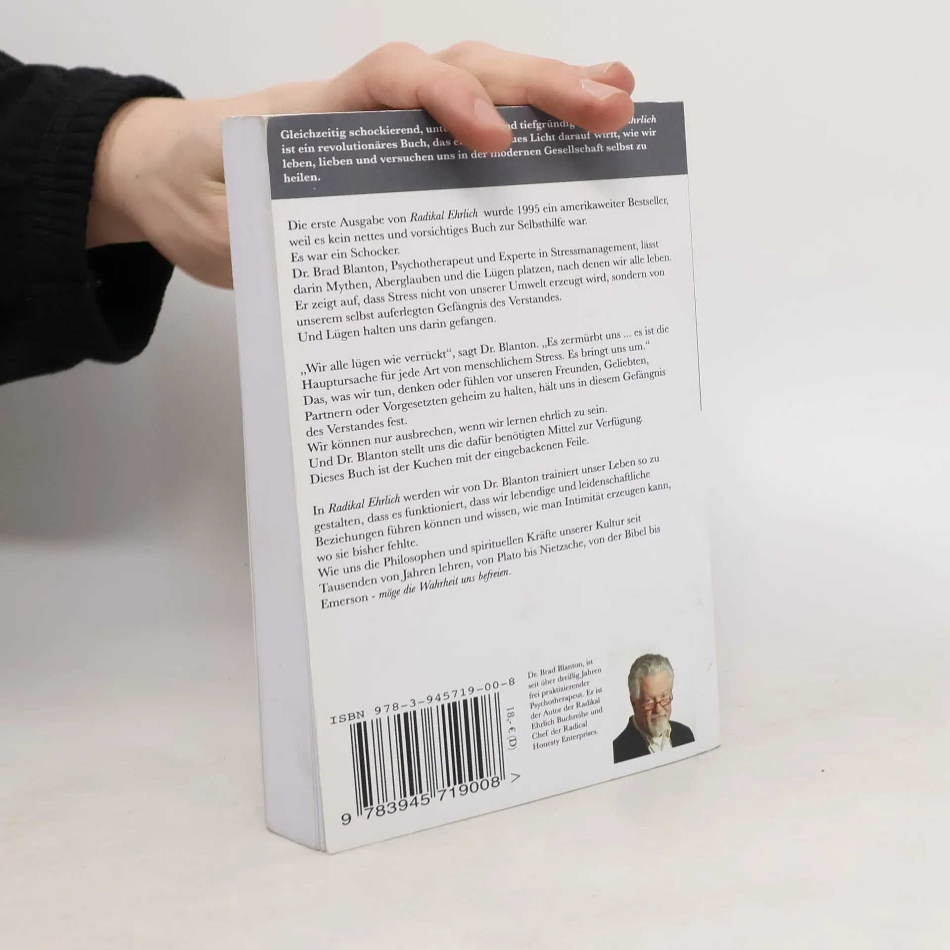 Die erste Ausgabe von Radikal Ehrlich wurde 1995 ein internationaler Bestseller, weil es kein weiteres nettes Selbsthilfe-Buch war, sondern ein Schocker. Brad Blanton, Psychotherapeut und Stress-Management-Experte, untersucht die Mythen, Aberglauben und Lügen, die unser Leben bestimmen. In dieser Neuauflage zeigt er, dass Stress nicht von unserer Umgebung kommt, sondern aus dem selbst geschaffenen Gefängnis unseres Verstandes, in dem uns das Lügen gefangen hält. „Wir alle lügen wie verrückt“, sagt Dr. Blanton. Diese Lügen zehren uns aus und sind die Hauptursache für menschlichen Stress. Das Verschweigen von Gedanken und Gefühlen gegenüber Partnern, Freunden oder Chefs hält uns in diesem mentalen Gefängnis gefangen. Der Ausweg besteht darin, die Wahrheit zu sagen. Dr. Blanton bietet uns die nötigen Werkzeuge zur Flucht aus diesem Gefängnis. Er lehrt, wie wir ein funktionierendes Leben und leidenschaftliche, lebendige Partnerschaften führen können und Intimität schaffen, wo zuvor keine war. Inspiriert von philosophischen und spirituellen Quellen unserer Kultur, von Plato bis Nietzsche, von der Bibel bis Emerson, erinnert er uns daran: Möge die Wahrheit dich frei machen.