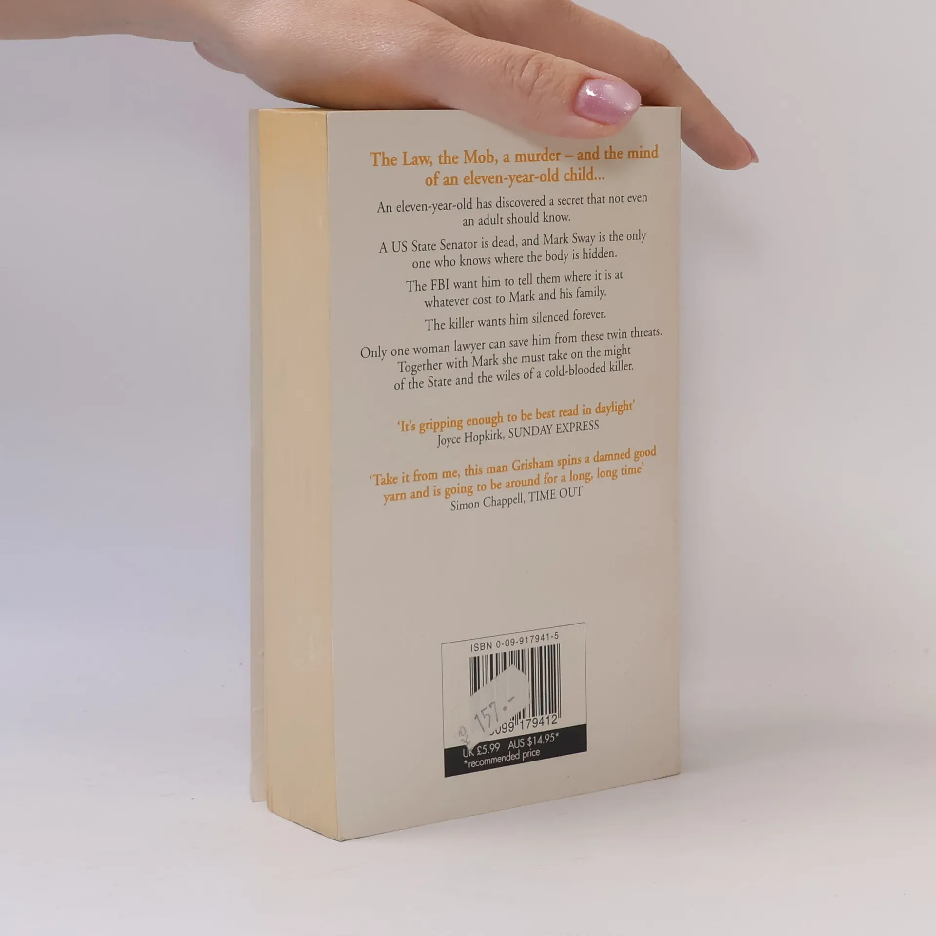 An eleven-year-old has discovered a secret that not even an adult should know. A US State Senator is dead, and Mark Sway is the only one who knows where the body is hidden. The FBI want him to tell them where it is, at whatever cost to Mark and his family. The killer wants him silenced forever. Reggie Love has been practising law for less than five years. Only she can save Mark from these twin threats. Together they must take on the might of the State and the wiles of a cold-blooded killer.