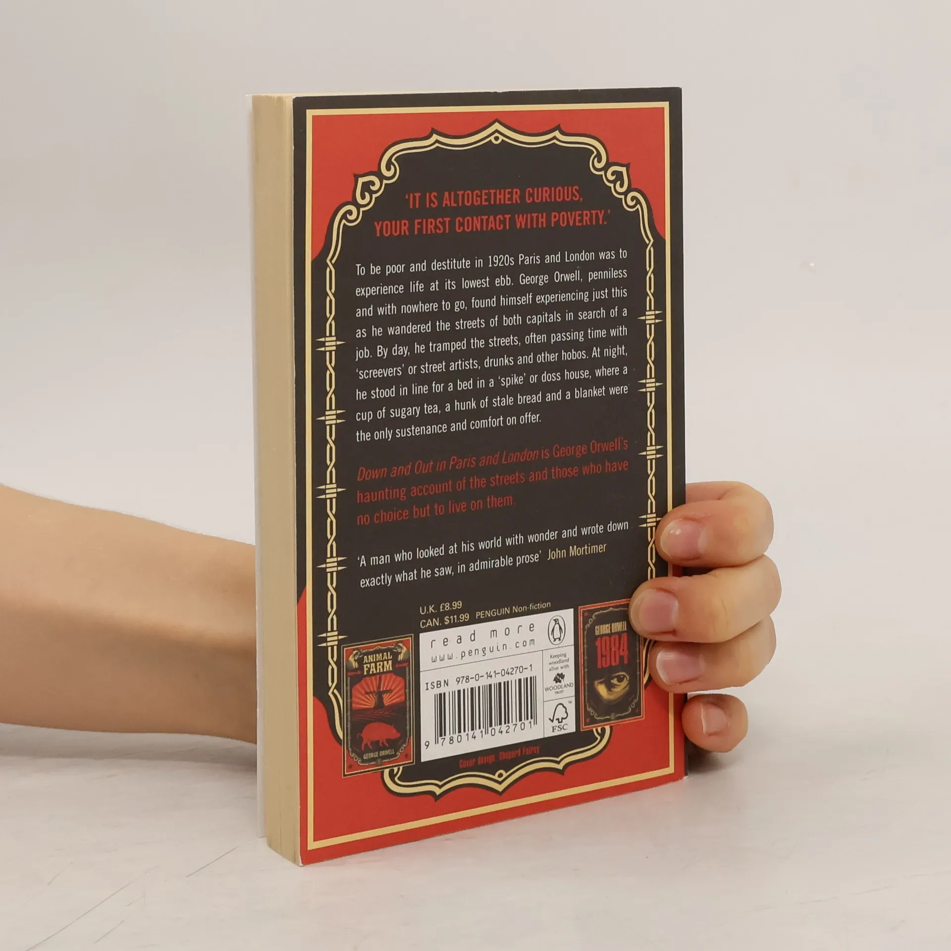 The perfect edition for any Orwell enthusiasts' collection, discover Orwell's personal account of life on the streets beautifully reimagined by renowned street artist Shepard Fairey To be poor and destitute in 1920s Paris and London was to experience life at its lowest ebb. George Orwell, penniless and with nowhere to go, found himself experiencing just this as he wandered the streets of both capitals in search of a job. By day, he tramped the streets, often passing time with 'screevers' or street artists, drunks and other hobos. At night, he stood in line for a bed in a 'spike' or doss house, where a cup of sugary tea, a hunk of stale bread and a blanket were the only sustenance and comfort on offer. First published in 1933, Down and Out in Paris and London is George Orwell's haunting account of the streets and those who have no choice but to live on them. 'A man who looked at his world with wonder and wrote down exactly what he saw, in admirable prose' John Mortimer COMPLETE THE TRIO WITH SHEPARD FAIREY'S NEW-LOOK 1984 AND ANIMAL FARM.