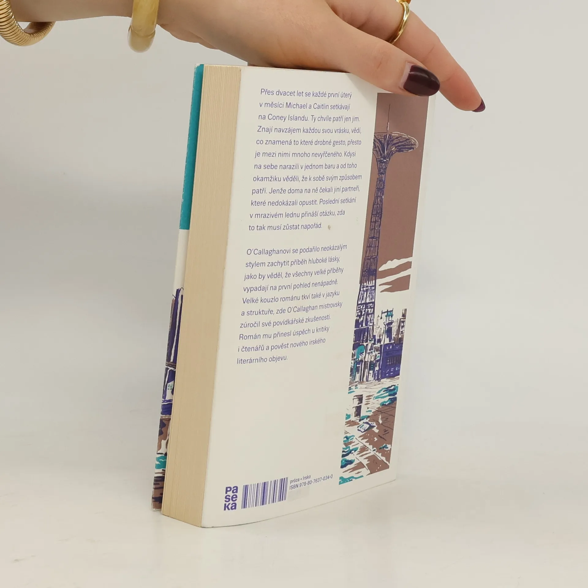 Už dvacet pět let se každý měsíc setkávají na brooklynském Coney Islandu, kde spolu stráví den. Michael a Caitlin znají navzájem každou svou vrásku, vědí, co znamená to které drobné gesto, přesto je mezi nimi mnoho nevyřčeného. Kdysi na sebe narazili v jednom baru a od té doby věděli, že k sobě svým způsobem patří. Jenže doma na ně čekali jiní partneři, které nešlo opustit. Poslední setkání v omšelém hotelu přináší otázku, zda to tak musí zůstat napořád. O’Callaghanovi se neokázalým stylem podařilo zachytit příběh hluboké lásky, jako by věděl, že všechny velké příběhy vypadají na první pohled nenápadně. Velké kouzlo románu tkví také v jazyku a struktuře, zde O’Callaghan mistrovsky zúročil své povídkářské zkušenosti. Román mu přinesl úspěch u kritiky i čtenářů a pověst nového irského literárního objevu.