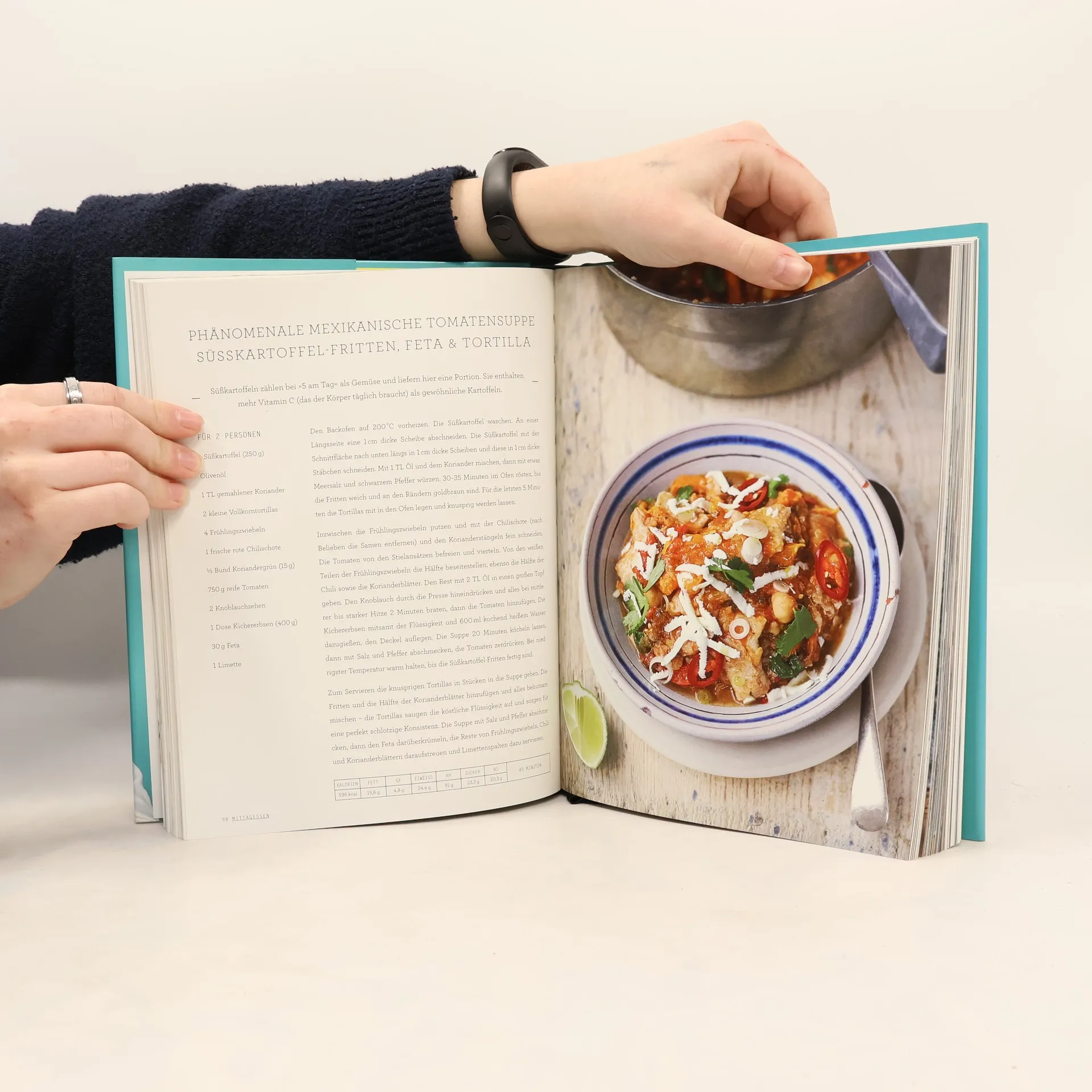 Nach einer persönlichen Reise, bei der seine Ernährung im Vordergrund stand, präsentiert Jamie Oliver das Ergebnis dieser Erfahrung: ein Kochbuch für gesunden Genuss mit dem Versprechen, „(…) jedes Rezept darin ist eine gute Wahl“. Das Prinzip ist eine einfache Gleichung: genial kochen + gesund genießen = glücklich sein. So hat Jamie über 90 originelle Rezepte für Frühstück, Mittag- und Abendessen entwickelt, die einem fundierten ernährungswissenschaftlichen Konzept folgen. Vom Protein-Porridge mit Haferflocken, Samen, Nüssen und Quinoa über Fisch-Tacos mit Kiwi-Limetten-Chili-Salsa bis hin zur Kürbislasagne mit Spinat, Hüttenkäse und Samen: Herausgekommen sind alltagstaugliche Gerichte, die kalorienarm, reich an Nährstoffen und voller Aroma sind - Superfood eben, für ganz viel Genuss und wenig Reue. „Dieses Buch soll Ihnen die Tür zu einem bewussteren Umgang mit Essen öffnen, zu Mahlzeiten, die nicht nur satt machen, Energie liefern und die Laune heben, sondern auch heilende Kräfte haben. Ich möchte Ihnen mehr Wissen über gesunde Ernährung vermitteln und Ihnen zeigen, wie man eine ausgewogene Mahlzeit zusammenstellt“. Jamie Oliver