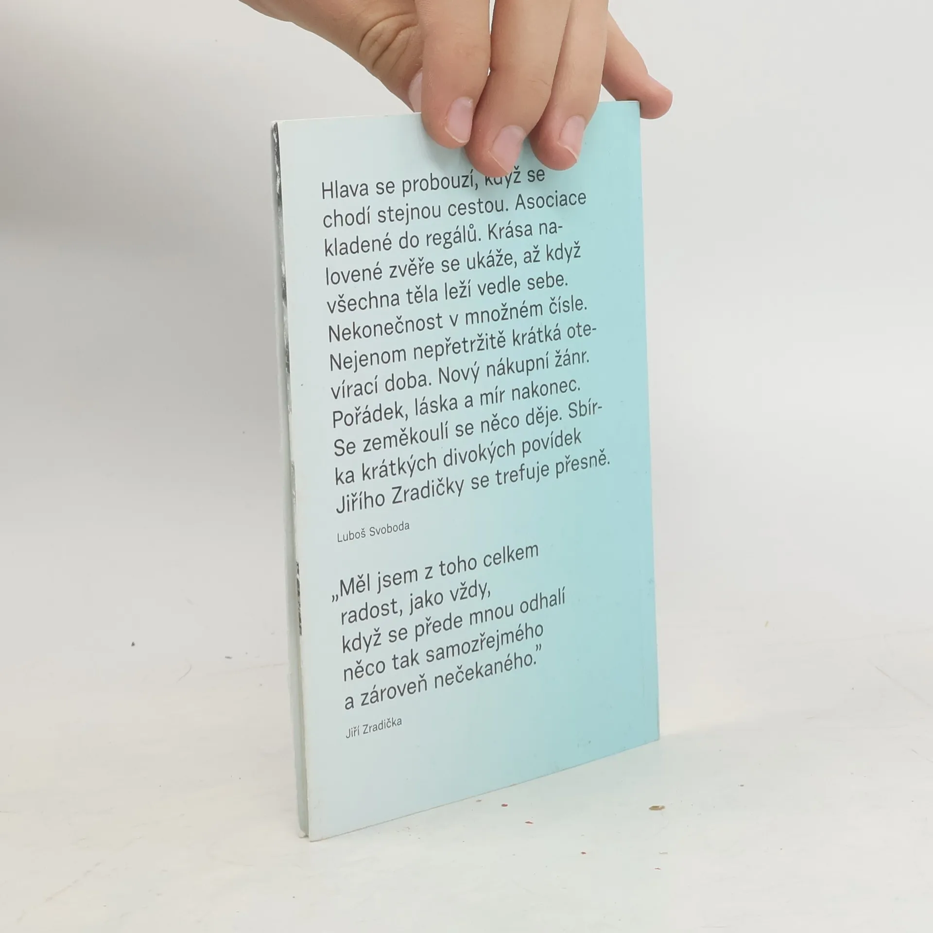Pokaždé je to stejné: pokaždé zazní na počátku kteréhokoli ze stručných textů Jiřího Zradičky, obsažených v tomto souboru, zásadní věta "Šli jsme do nonstopu". Jenom v tom úvodním je sice v autorově kuriózním obchodu zavřeno, v těch ostatních se však před konzumentským pátrem, tvořeným vypravěčem a jeho přítelkyní Petrou, otevře doširoka rozevřená náruč fantazie, jež nabízí roztodivné zboží všeho druhu: lze zde například zakoupit věšteckou kouli, vejcorodého Indiána nebo v "oddělení temného koutu" sáček bonbónů s afrodiziakálními účinky na sousedy. Zradičkův "nonstop" je postmoderním světem podivuhodných představ, které dnešní člověk nejen denně vnímá a navštěvuje, ale jež také útočí na jeho smysly, zaplavují ho a možná i přispívají k tomu, že se civilizace nenápadně blíží k chaosu a zmatku. A tak "pořádek, mír a lásku" mohou paradoxně obnovit snad jenom siamská dvojčata v kojeneckém věku, oddělená od sebe dětskou pilkou... Soubor textů lektora zájmového centra, které sice vycházejí z běžné životní situace, jsou ovšem svébytnou černohumornou optikou dovedeny až do tragikomických absurdních rozměrů.