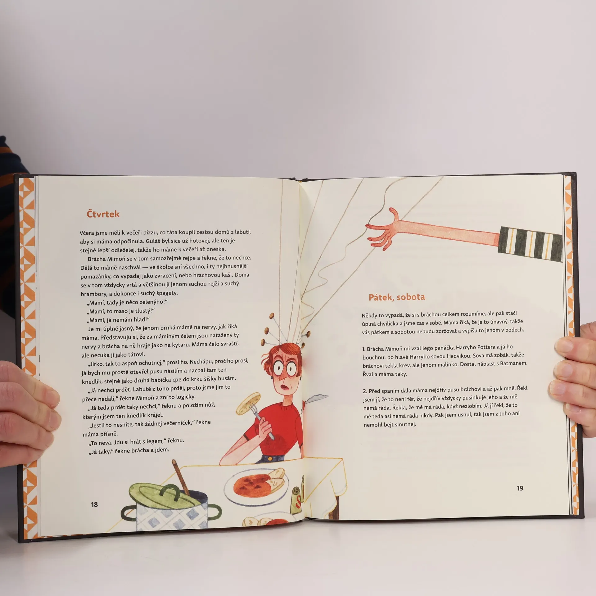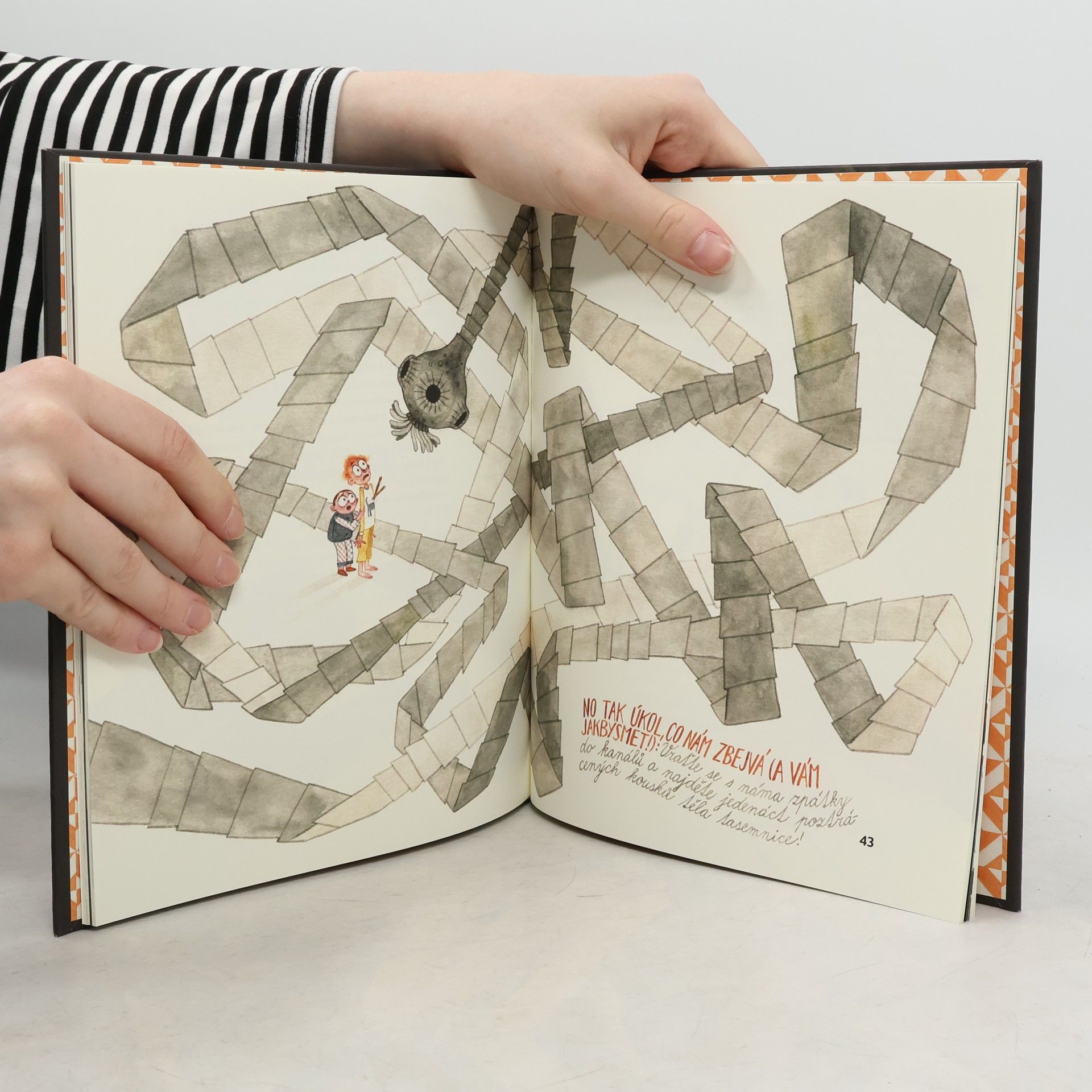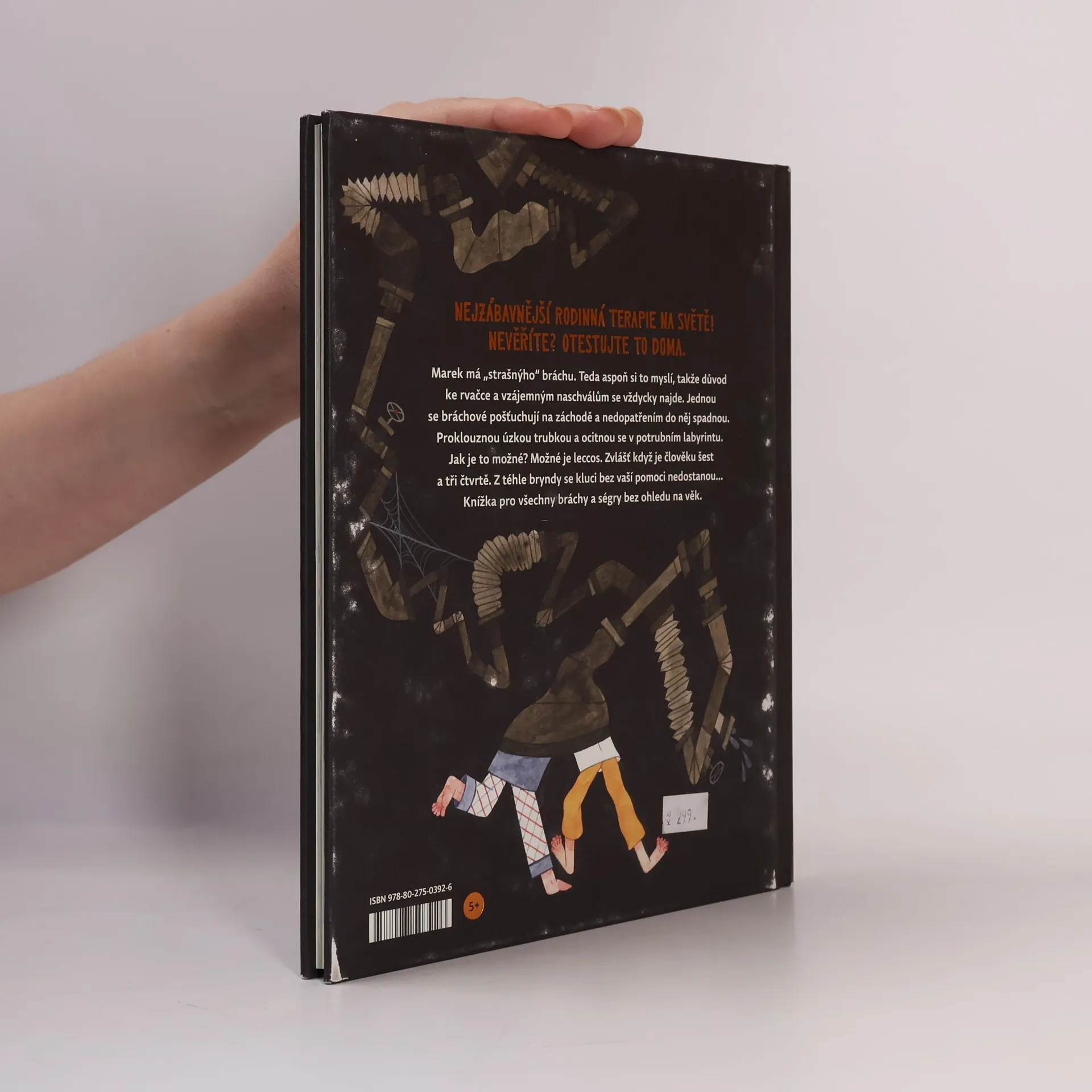Marek má „strašnýho“ bráchu. Tedy aspoň si to myslí, a proto mu říká Mimoň. Jenže v určitém věku je každý mladší sourozenec strašný a věkový rozdíl dvou let je propastný jako Mariánský příkop. Takže je jasné, že důvod ke rvačce a vzájemným naschválům se vždycky najde. Zlobit se prostě může každý den, a to i v neděli. Jednou se bráchové zase pošťuchují, tentokrát na záchodě, až do něj nedopatřením spadnou. Proklouznou úzkou trubkou a ocitnou se v potrubním labyrintu. Jak je to možné? Možné je leccos. Zvlášť když je vám šest a tři čtvrtě. Dostat se z takové bryndy nebude jen tak. Cestou malé hrdiny potká nejeden zádrhel. Bez pomoci čtenářů to tentokrát nepůjde. Interaktivní ilustrovaná kniha pro všechny velké i malé sourozence.