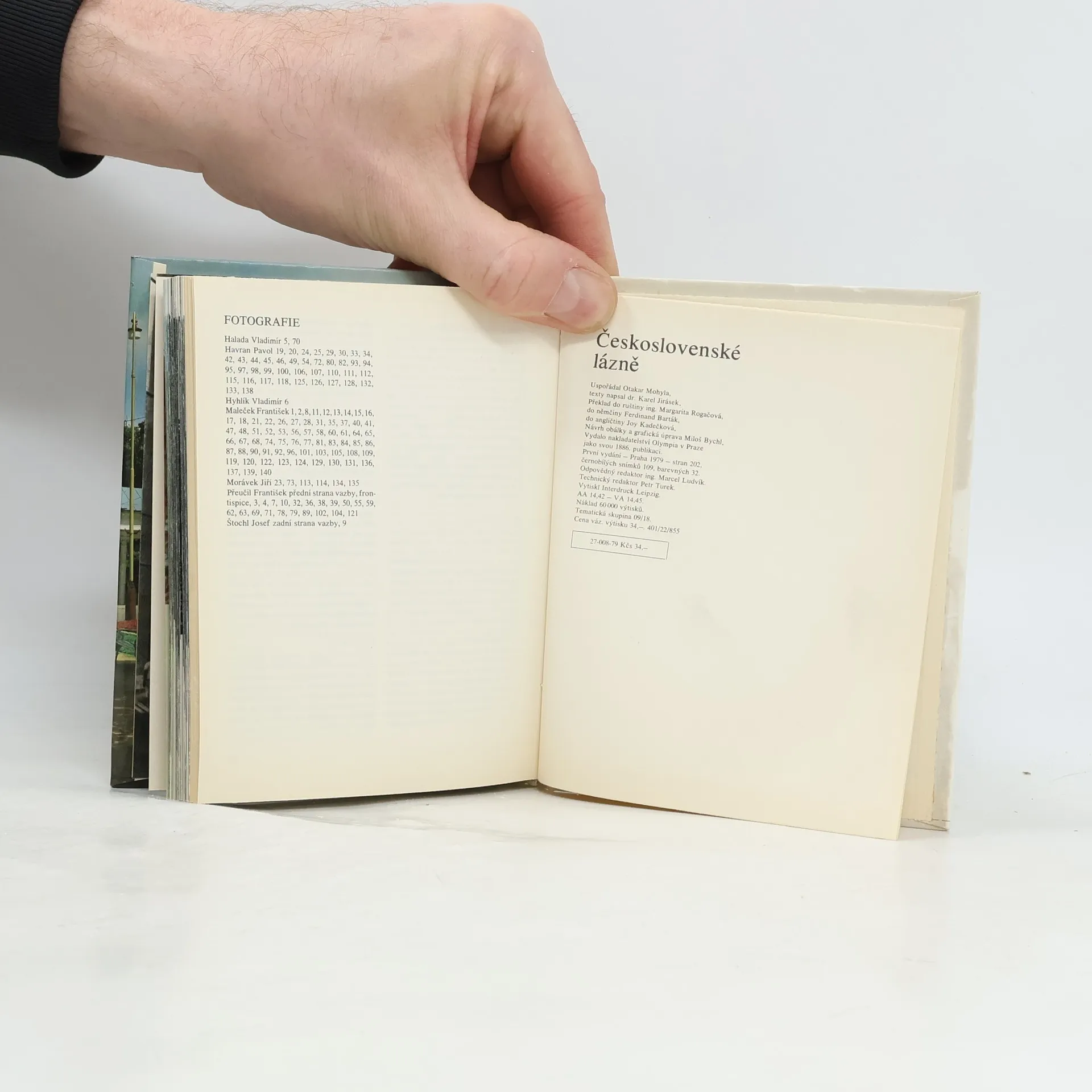 Černobílé (109) a barevné (32) snímky československých lázní. Stručné informace napsal dr. Karel Jirásek. Jsou také přeložené do angličtiny (Joy Kadlečková), němčiny (Ferdinand Barták) a ruštiny (ing. Margarita Rogačová). 1. vydání