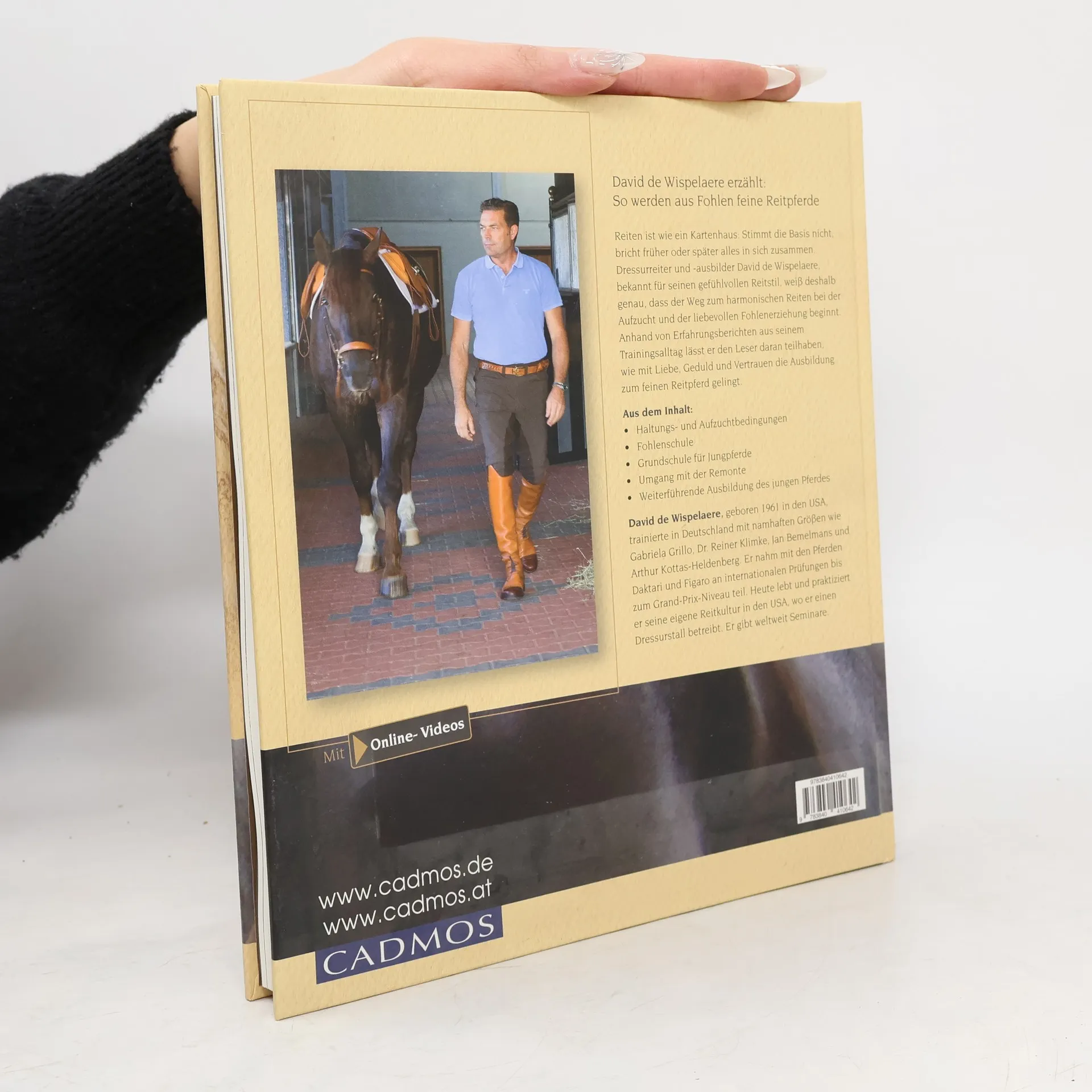 Den Zweieinhalbjährigen von der Koppel holen, anlongieren und losreiten? Gängige Praxis, die zu vielen Problemen führt: Schreckhafte Jungpferde, die bereits nach den ersten Reitversuchen Angst vorm Reiter haben und nur mit viel Geduld und Mühe zu feinen Reitpferden werden sind das Ergebnis. Es geht deutlich harmonischer: Junge Pferde können schonend an den Umgang mit Menschen herangeführt werden und Vertrauen und Reitpferdemuskeln aufbauen, bevor es ans Anreiten selbst geht. Je mehr gute Erfahrungen sie machen, desto umgänglicher sind sie später unter dem Sattel. Zwang und Druck werden unnötig. David de Wispelaere zeigt, wie die von Harmonie, Freude, Liebe und Vertrauen geprägte Partnerschaft mit dem Pferd Wirklichkeit wird und sich wie ein roter Faden durch das Leben des Pferdes zehen kann – von den ersten Lebenstagen des Fohlens bis zum voll ausgebildeten erwachsenen Pferd. Bestes Beispiel, dass seine Methode funktioniert, ist de Wispelaere selbst: Im Gegensatz zu vielen anderen Profireitern reitet er seine Jungpferde selbst an, weil er dank der schonenden Vorbereitung nicht mit massiven Abwehrreaktionen rechnen muss.