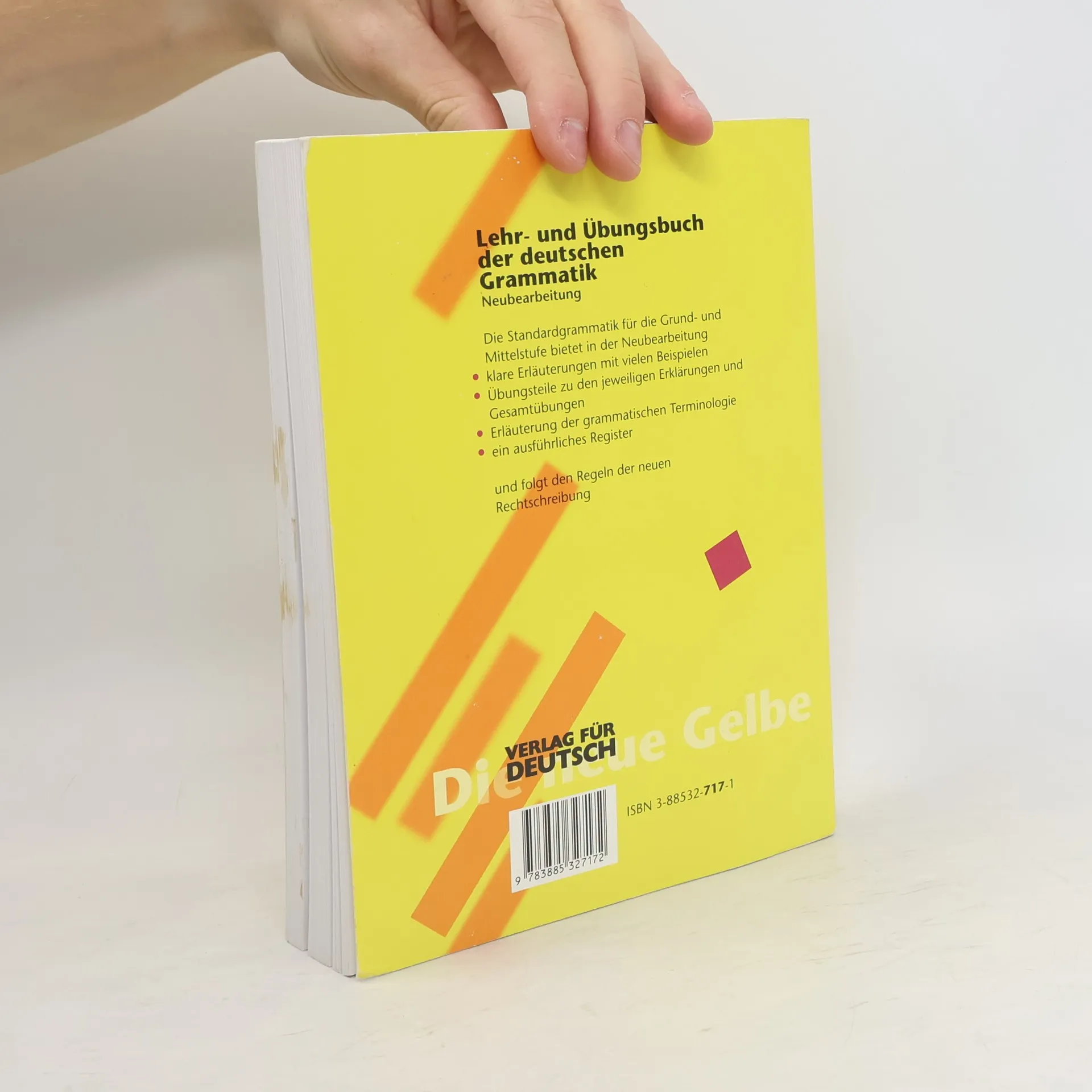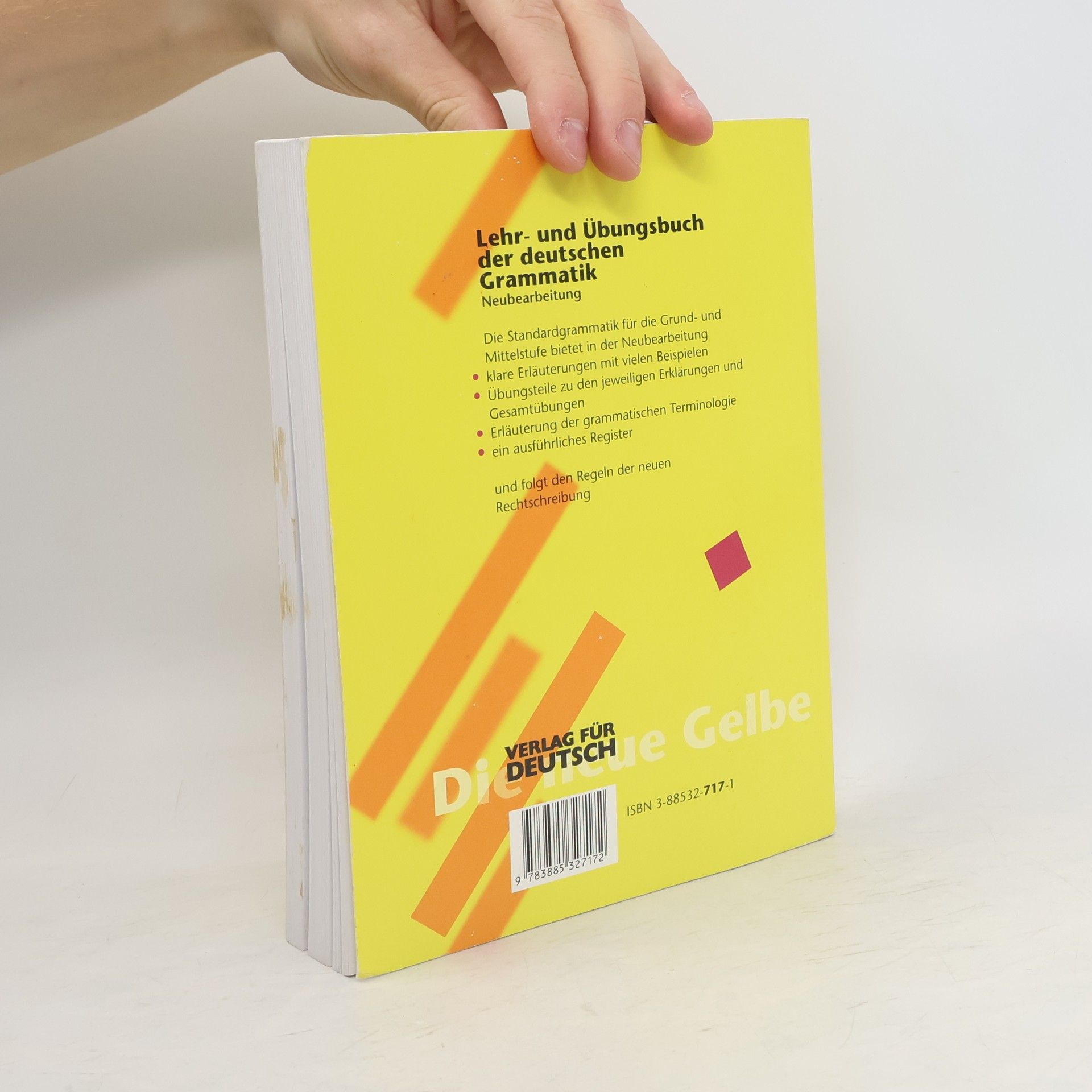 Zielgruppe: Anfänger zum systematischen Lernen und Üben; Fortgeschrittene zur gründlichen Wiederholung und Systematisierung; allgemein zum Nachschlagen. Voraussetzungen: Basiskenntnisse im Deutschen Lernziel: Sichere Beherrschung der Sprache in der schriftlichen und mündlichen Anwendung. Diese weltweit bekannte und bewährte Standardgrammatik ist universell einsetzbar für die Grund- und Mittelstufe: als kurstragendes Lehrwerk für den Grammatikunterricht, als kursbegleitende Übungsgrammatik und zusammen mit dem ausführlichen Schlüssel als Grammatik zum Selbststudium. Sie ist das Basiswerk für den strukturierten Grammatikerwerb und zeichnet sich durch den schnellen Wechsel von Erklären und Üben aus. Diese Kleinschrittigkeit unterstreicht die lernerfreundliche Struktur. Eine Übersicht über die Konjugation und Deklination zum Ausklappen hilft dem Lernenden, sich schnell zu orientieren. Nicht zuletzt unterstützt die Zweifarbigkeit die Übersichtlichkeit und hebt die Erklärungen hervor.