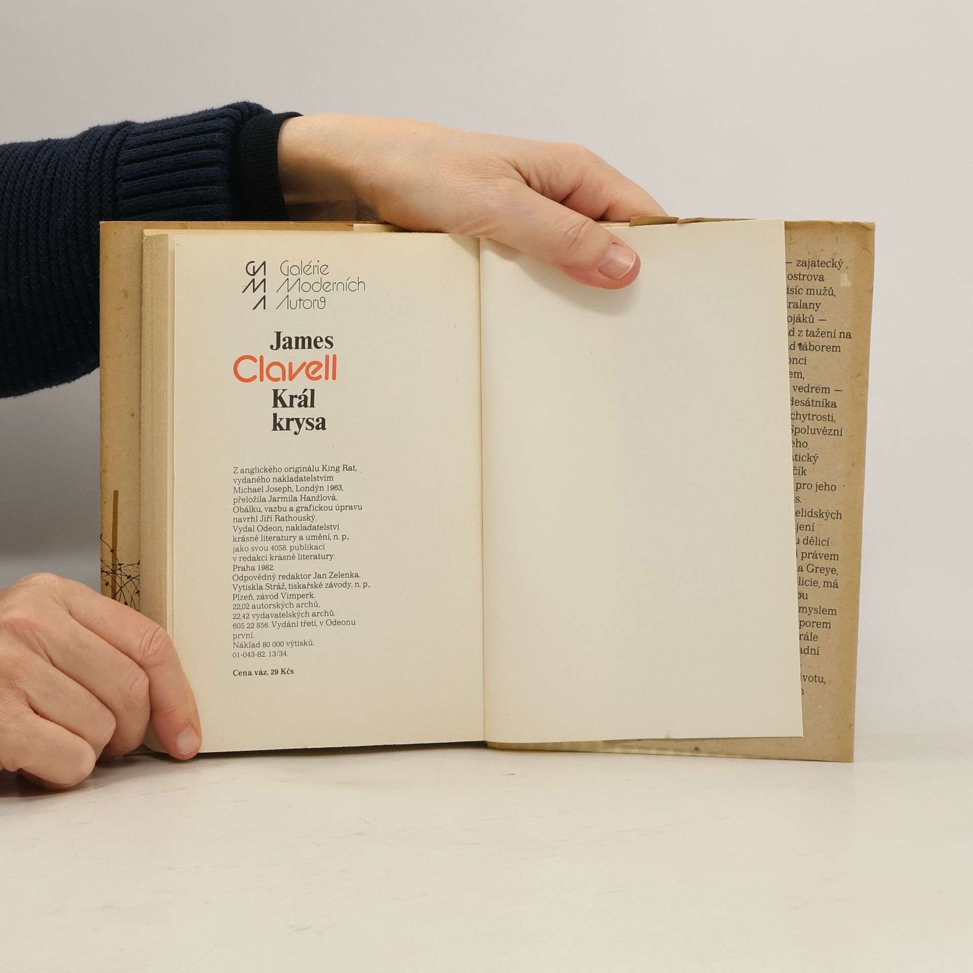 Román z prostředí japonského zajateckého tábora poblíž Singapuru, z tábora, v němž živoří hladem, žárem a nemocemi zbytky spojeneckých armád z tažení na dálném východě - Angličané, Australané a Američané. Na pozadí prolínaného a v závěru podtrženého pozorování krysího způsobu života, kdy živí jedinci se živí mrtvými a posléze slabší živí se stávají potravou silných živých, vypráví autor příběh amerického desátníka s příznačným jménem King - Král, který se v tomto prostředí bídy a utrpení, v tomto ,"soumračném světě polomrtvých", snaží za pomoci peněz a černého obchodu na úkor ostatních přežít. Román je fikcí a chce být kritikou amerického způsobu života. Edice: Galérie moderních autorů Obálka a vazba: Jiří Rathouský 80000 výt.