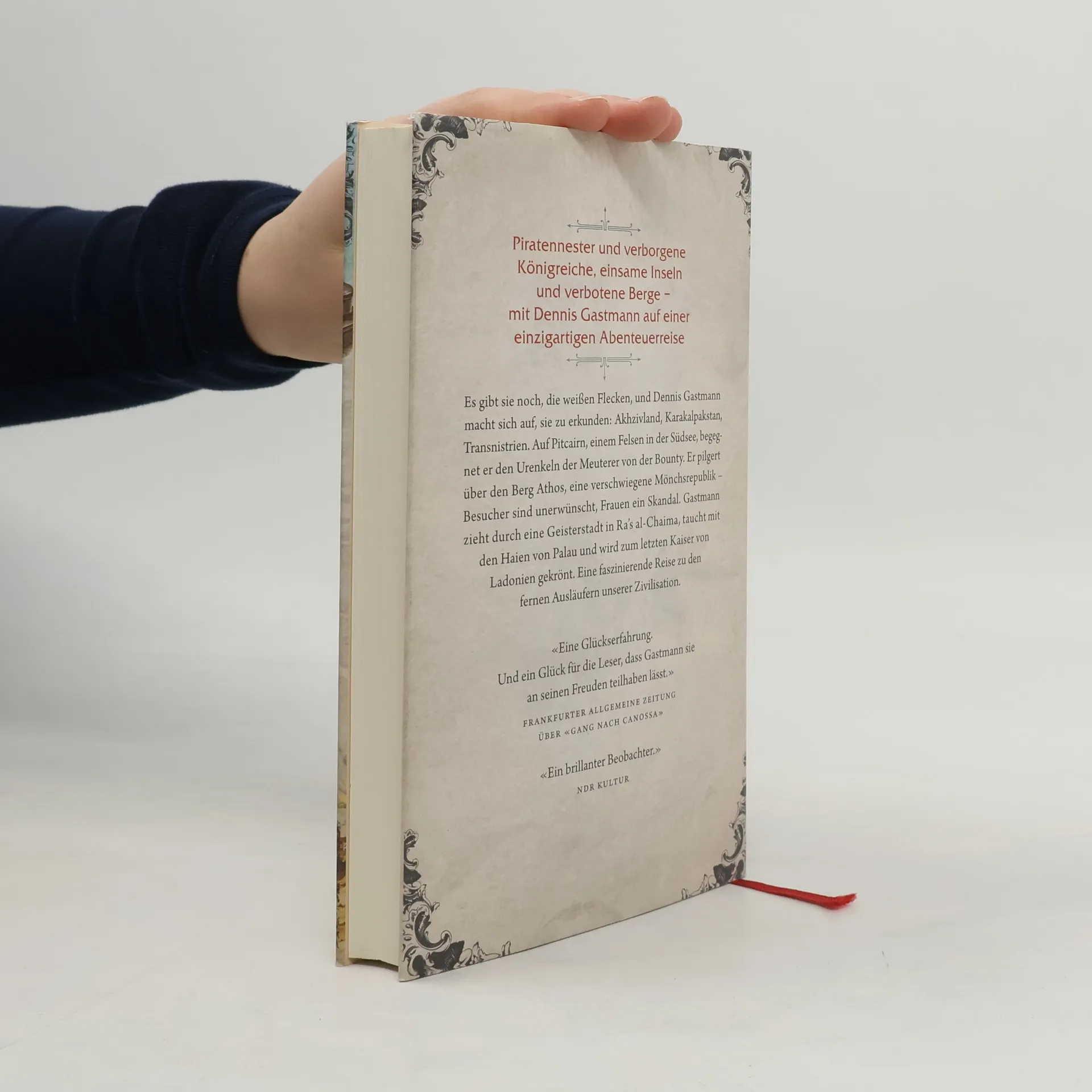 Nach Marco Polo, Kolumbus und Millionen Touristen scheint jeder Winkel der Welt entdeckt ̶ doch das ist ein Irrtum! Dennis Gastmann erkundet Orte, die fern, unbekannt oder vergessen und in jedem Fall magisch sind: Akhzivland, Karakalpakstan, R’as al-Chaima. Auf dem Südsee-Felsen Pitcairn begegnet er den Nachfahren der Meuterer von der Bounty, in Palau taucht er mit Haien. Er wandert durch die tausendjährige Mönchsrepublik auf dem Berg Athos, in der Besucher unerwünscht sind, die bärtigen Heiligen wollen unter sich bleiben. Gastmann sucht nach Liebe in Transnistrien, einem Mafiastaat, der Besuchern empfiehlt: «Fahren Sie lieber nach Spanien!» Er begegnet Geistern und Dämonen, gerät in einen Taifun und wird zum letzten Kaiser von Ladonien gekrönt… Mit Charme und Hintersinn begibt sich Dennis Gastmann zu den Ausläufern unserer Zivilisation. Wie sieht es dort aus? Wie lebt man dort? Und was sagt das über den Rest unserer durchorganisierten Welt?