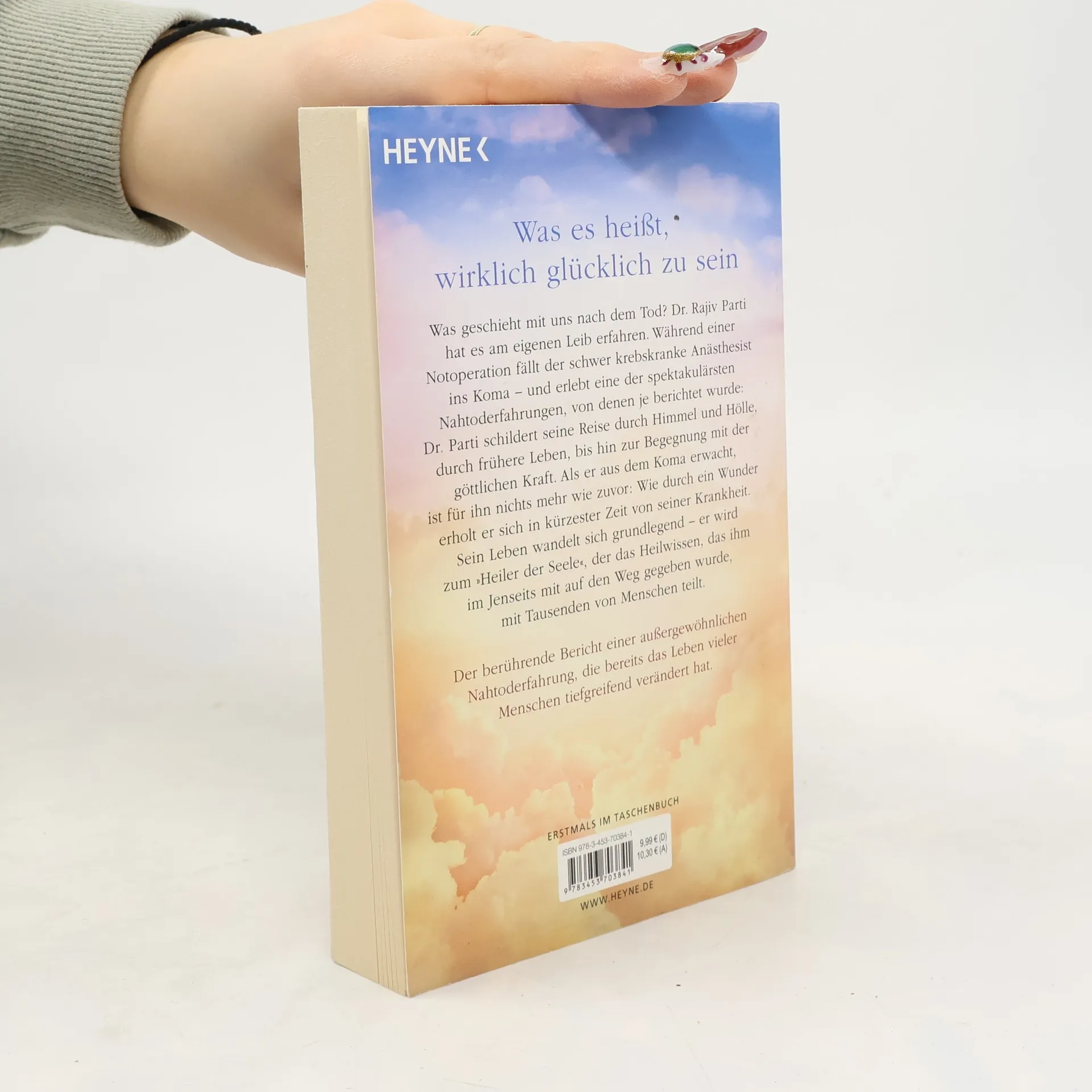 Überraschende Antworten auf die größte aller Fragen Was geschieht mit uns nach dem Tod? Dr. Rajiv Parti hat es am eigenen Leib erfahren: Während einer Notoperation im Jahr 2010 fällt der schwer krebskranke Anästhesist ins Koma. Was er dann erlebt, ist eine der spektakulärsten Nahtoderfahrungen, von denen je berichtet wurde: Dr. Parti schildert seine Reise durch Himmel und Hölle, durch frühere Leben bis hin zur Begegnung mit der göttlichen Kraft. Als er aus dem Koma erwacht, ist für ihn nichts mehr wie zuvor: Wie durch ein Wunder erholt er sich in kürzester Zeit von seiner Krankheit. Sein Leben wandelt sich grundlegend – vom geld- und karriereversessenen Wissenschaftler zum »Heiler der Seele«, der das Heilwissen, das ihm im Jenseits mit auf den Weg gegeben wurde, mit Tausenden von Menschen teilt. Der berührende Bericht einer außergewöhnlichen Nahtoderfahrung, die das Leben von Rajiv Parti und vielen anderen Menschen tiefgreifend verändert hat. »Diese Schilderung einer Nahtoderfahrung ist zutiefst berührend und inspirierend.« Dr. Raymond A. Moody, Bestsellerautor und Nahtodforscher