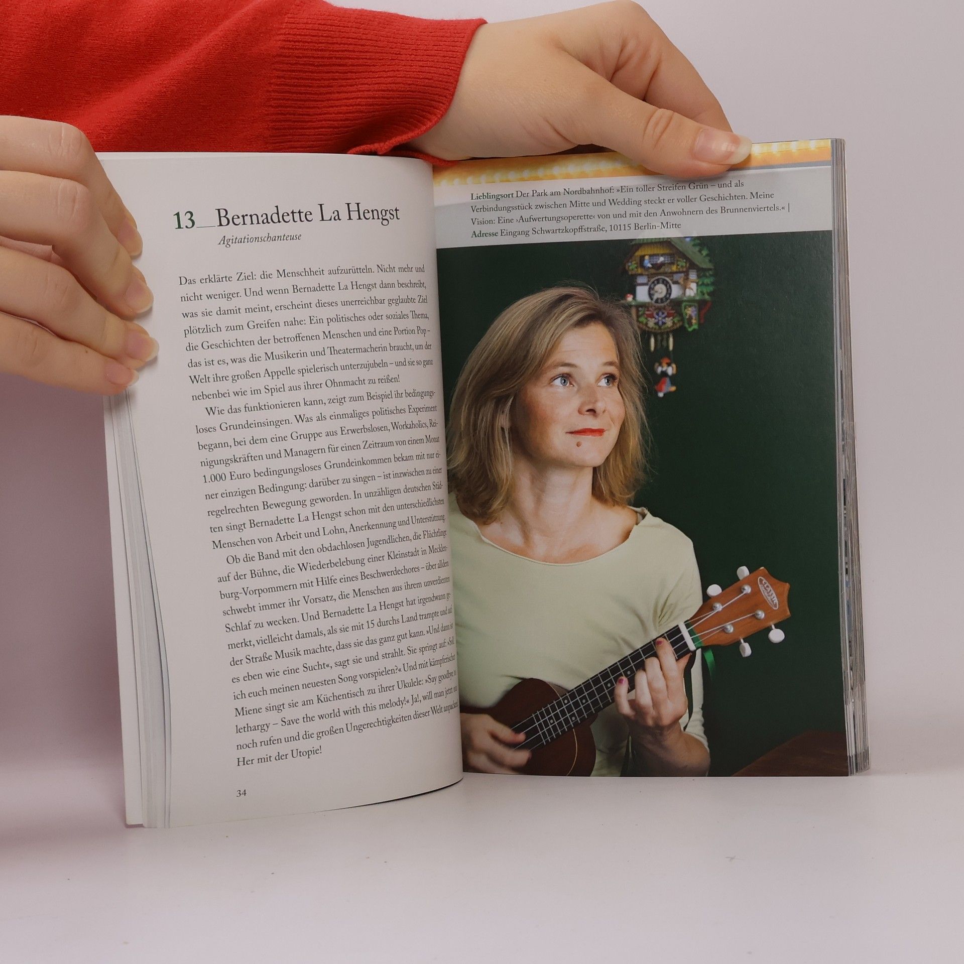 'Wo ick bin, da is vorn!' Berliner sind eigen und eigenwillig. Weder höflich noch bescheiden. Aber diese derben Draufgänger haben es geschafft, das olle Berlin zum Nabel der Welt zu machen! Die Autorinnen haben 111 Menschen in dieser Stadt getroffen, die unterschiedlicher nicht sein könnten. Sie alle haben für einen Moment ihre Welt mit ihnen geteilt. Zum Beispiel die 75-jährige Hausbesetzerin Doris Syrbe, die sich gegen den Verkauf der Seniorenvilla gewehrt hat, oder Rennfahrerin Heidi Hetzer, die im Rolls Royce die Welt umrundet. Oder aber auch Klavierhelmut, der heute Abend bestimmt wieder auf der Kottbusser Brücke spielt, während der Visionär Ralf Steeg weiter daran arbeitet, dass die Berliner bald wieder in der Spree schwimmen können.
