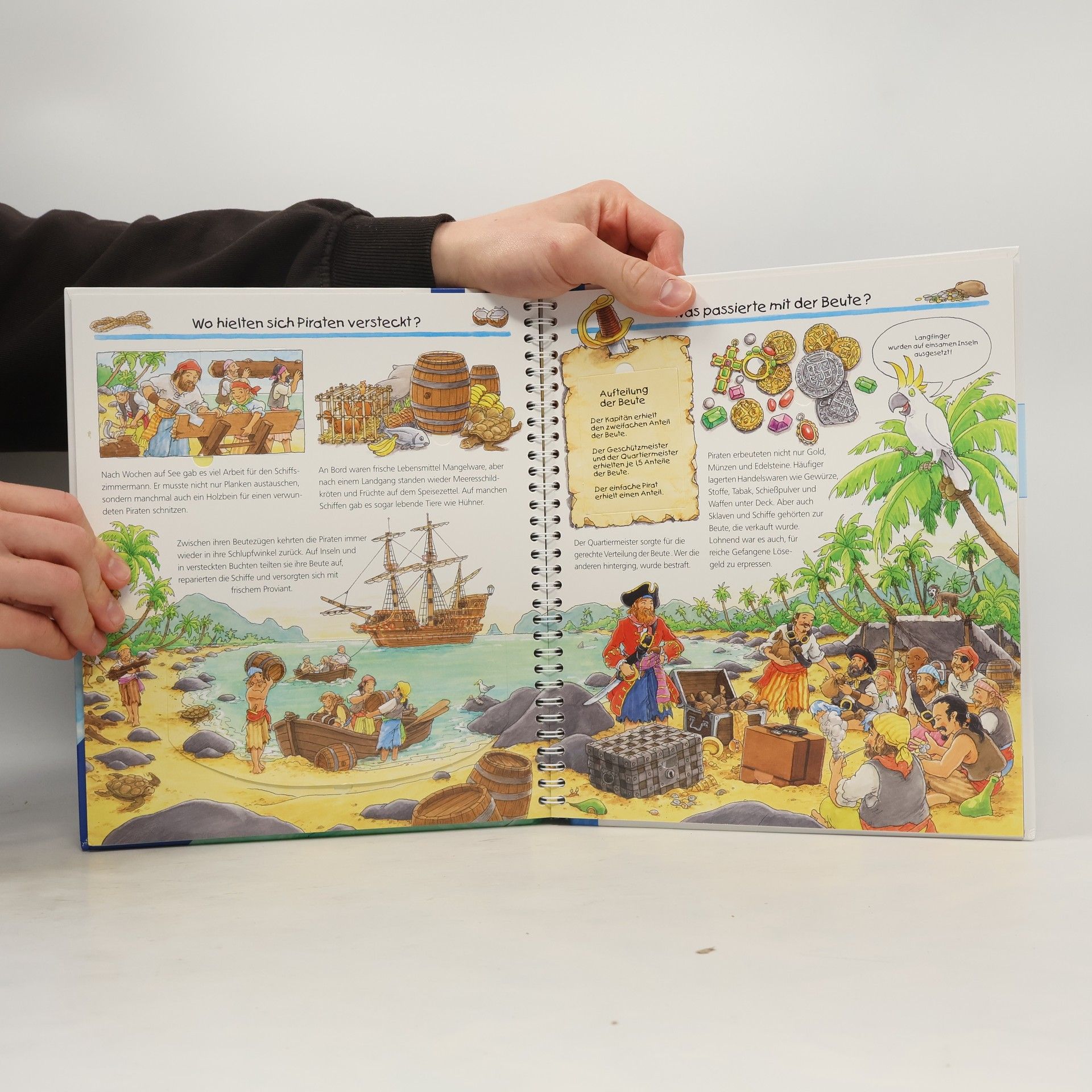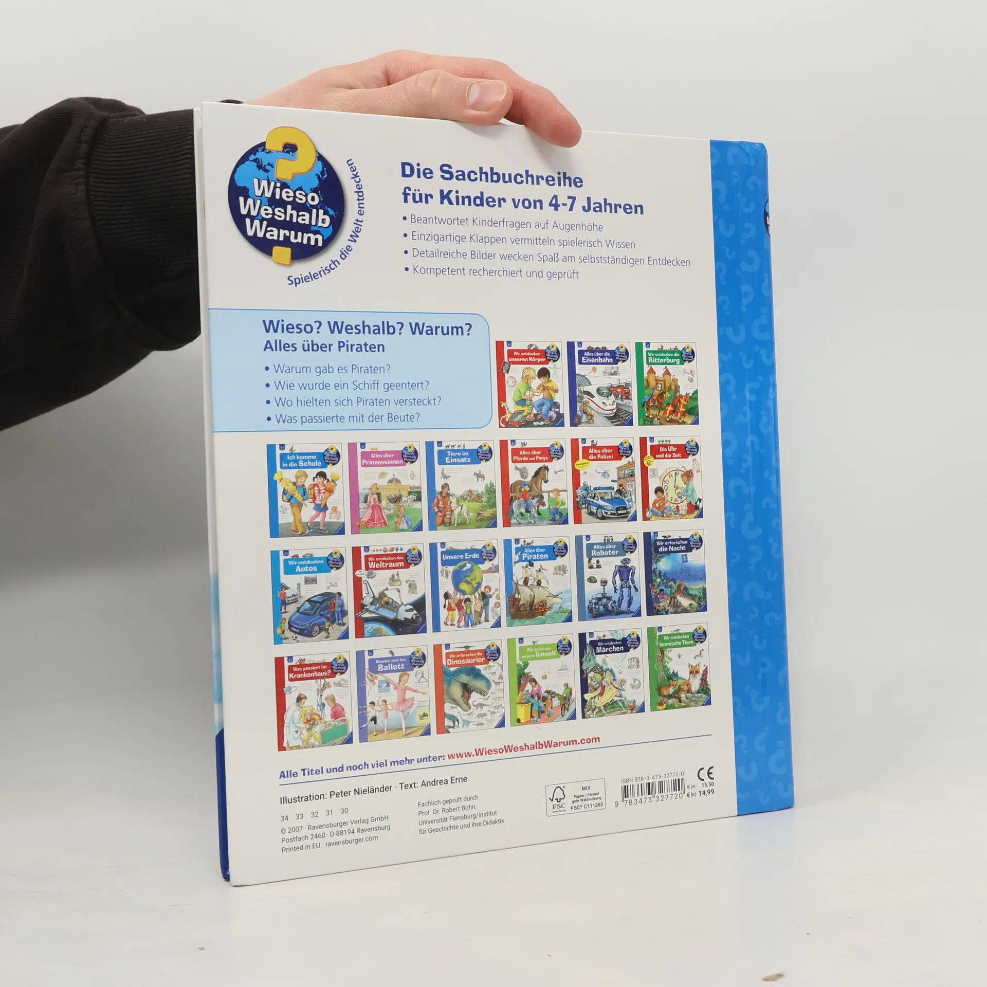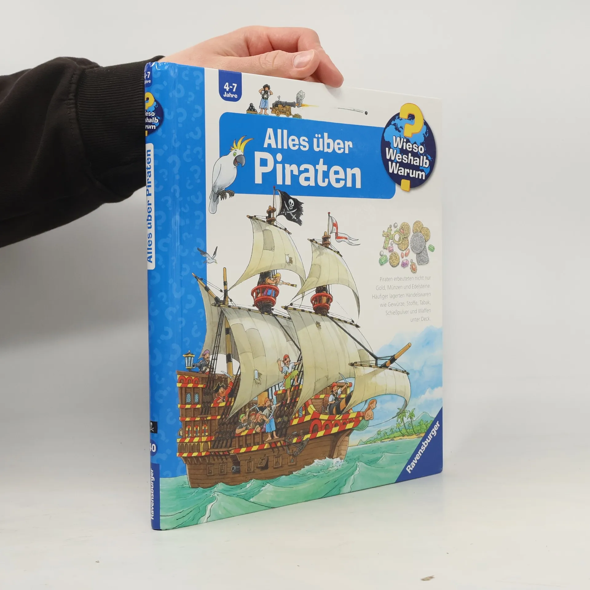Leinen los und Segel setzen, auf geht’s ins goldene Zeitalter der Piraterie. Mithilfe von spektakulären Klappen schauen Kinder unter Deck, laden Kanonen oder entern ein Schiff. Doch warum gab es Piraten? Wie sah das Leben auf hoher See aus? Und wo treiben Piraten heute ihr Unwesen? Wer Antworten auf solche Fragen sucht, braucht dieses Buch. Behutsam geht es auch auf Schattenseiten des Piratenlebens ein, denn nur wenige Freibeuter wurden reich oder alt. Wieso? Weshalb? Warum? Die Sachbuchreihe für Kinder von 4–7 Jahren Jeden Tag entdecken Kinder etwas Neues – da kommen viele Fragen auf. Warum sind die Dinosaurier ausgestorben? Wo ist die Sonne in der Nacht? Wozu brauchen wir das Blut? Die beliebte Sachbuchreihe Wieso? Weshalb? Warum? gibt Kindern Antworten auf Augenhöhe. Dabei werden die unterschiedlichsten Themen aus der Alltags- und Interessenswelt der Kinder altersgerecht und mit viel Liebe zum Detail unter die Lupe genommen. Detailreiche Bilder, verständliche Sachtexte und überraschende Klappen, die Bewegungen oder Abläufe veranschaulichen und hinter die Dinge blicken lassen, ermöglichen Kindern, sich ihre Themen selbst zu erschließen. Der Spaß am eigenhändigen Entdecken, die liebevolle Umsetzung und die qualitativ hochwertige Ausstattung garantieren langanhaltende Freude an jedem einzelnen Buch.