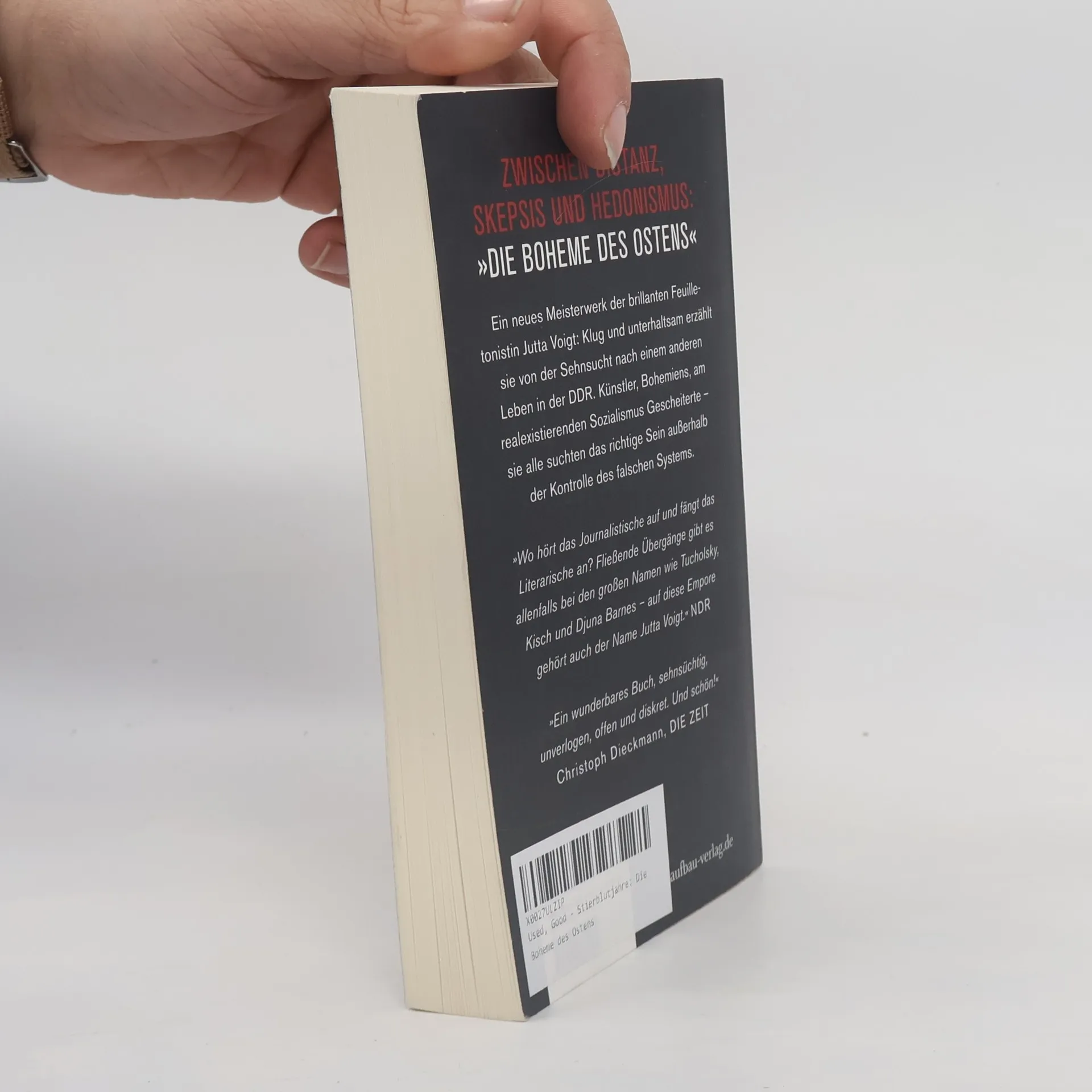 Zwischen Distanz, Skepsis und Hedonismus: Ein neues Meisterwerk der brillanten Feuilletonistin Jutta Voigt erzählt von der Sehnsucht nach einem anderen Leben in der DDR. Künstler und Bohemiens, die am realexistierenden Sozialismus gescheitert sind, suchten das richtige Sein außerhalb der Kontrolle des Systems. Im Mittelpunkt steht eine Boheme, die ein elementares Interesse verfolgte: das andere Leben. In den frühen Jahren der DDR geprägt von rebellischem Elitebewusstsein und Aufbruchspathos, wurde die Haltung in den Siebzigern zunehmend kritisch und reformerisch, während sie in den Achtzigern distanziert bis gleichgültig wurde. Die Künstler – von Brecht bis Müller, von Hacks bis Wawerzinek – strebten danach, als Individuen unkontrolliert zu existieren. Besonders in den zerfallenden Mietshäusern des Prenzlauer Bergs in Berlin sowie in Leipzig, Dresden-Loschwitz und Halle entwickelte sich eine subkulturelle Szene. Voigt wird zur Chronistin derer, die das richtige Leben suchten – radikal, humorvoll, oft betrunken und immer leidenschaftlich. Ihr Werk ist ein fließender Übergang zwischen Journalismus und Literatur, vergleichbar mit großen Namen wie Tucholsky und Kisch. Kritiker loben das Buch als sehnsüchtig, unverlogen, offen und schön.