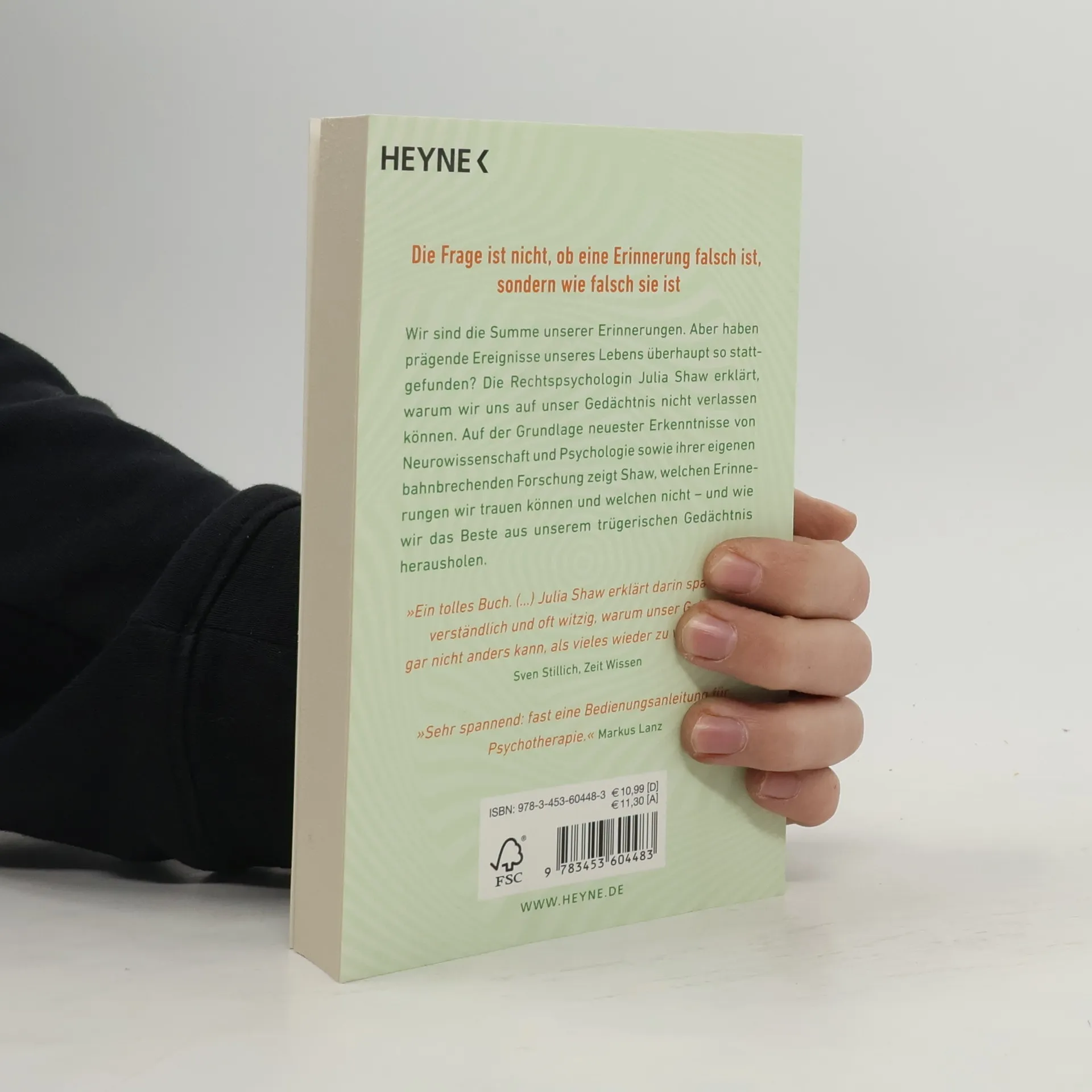 »Die Frage ist nicht, ob eine Erinnerung falsch ist, sondern wie falsch sie ist.« Julia Shaw Wir sind die Summe unserer Erinnerungen. Aber haben prägende Ereignisse unseres Lebens überhaupt so stattgefunden? Die Rechtspsychologin Julia Shaw erklärt, warum wir uns auf unser Gedächtnis nicht verlassen können. Auf der Grundlage neuester Erkenntnisse von Neurowissenschaft und Psychologie sowie ihrer eigenen bahnbrechenden Forschung zeigt Shaw, welchen Erinnerungen wir trauen können und welchen nicht – und wie wir das Beste aus unserem trügerischen Gedächtnis herausholen.