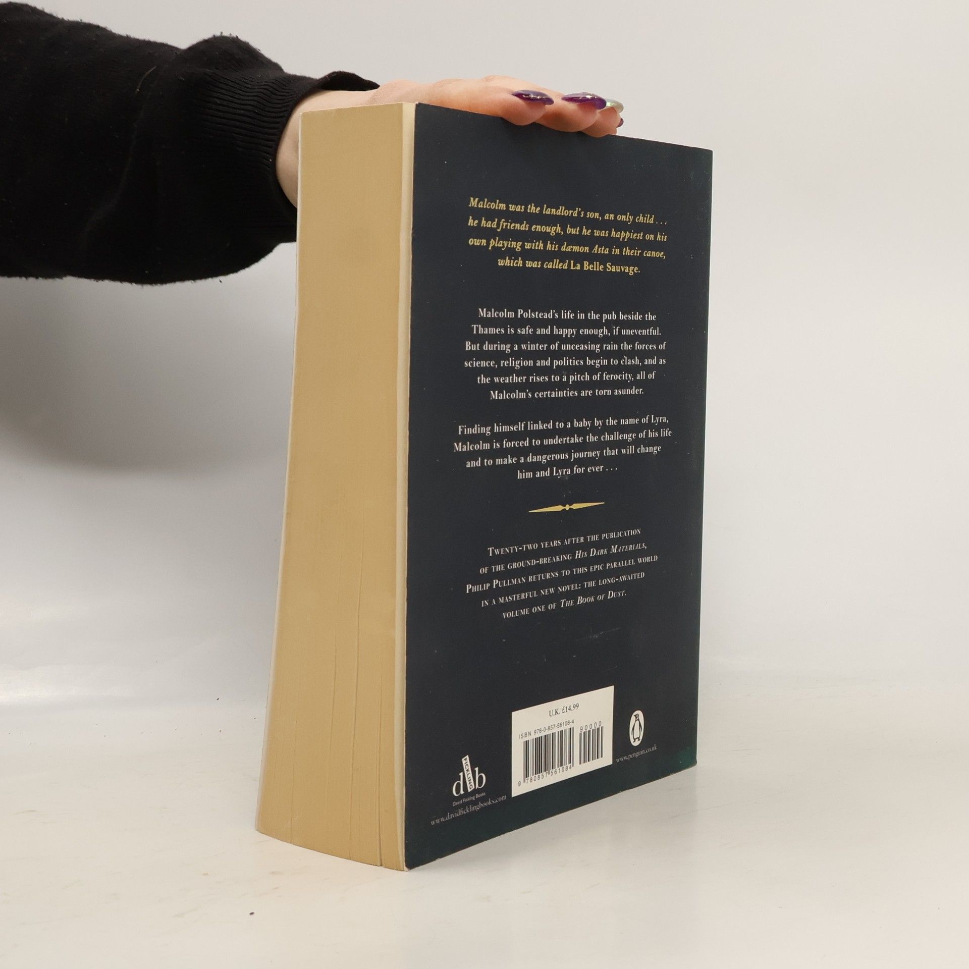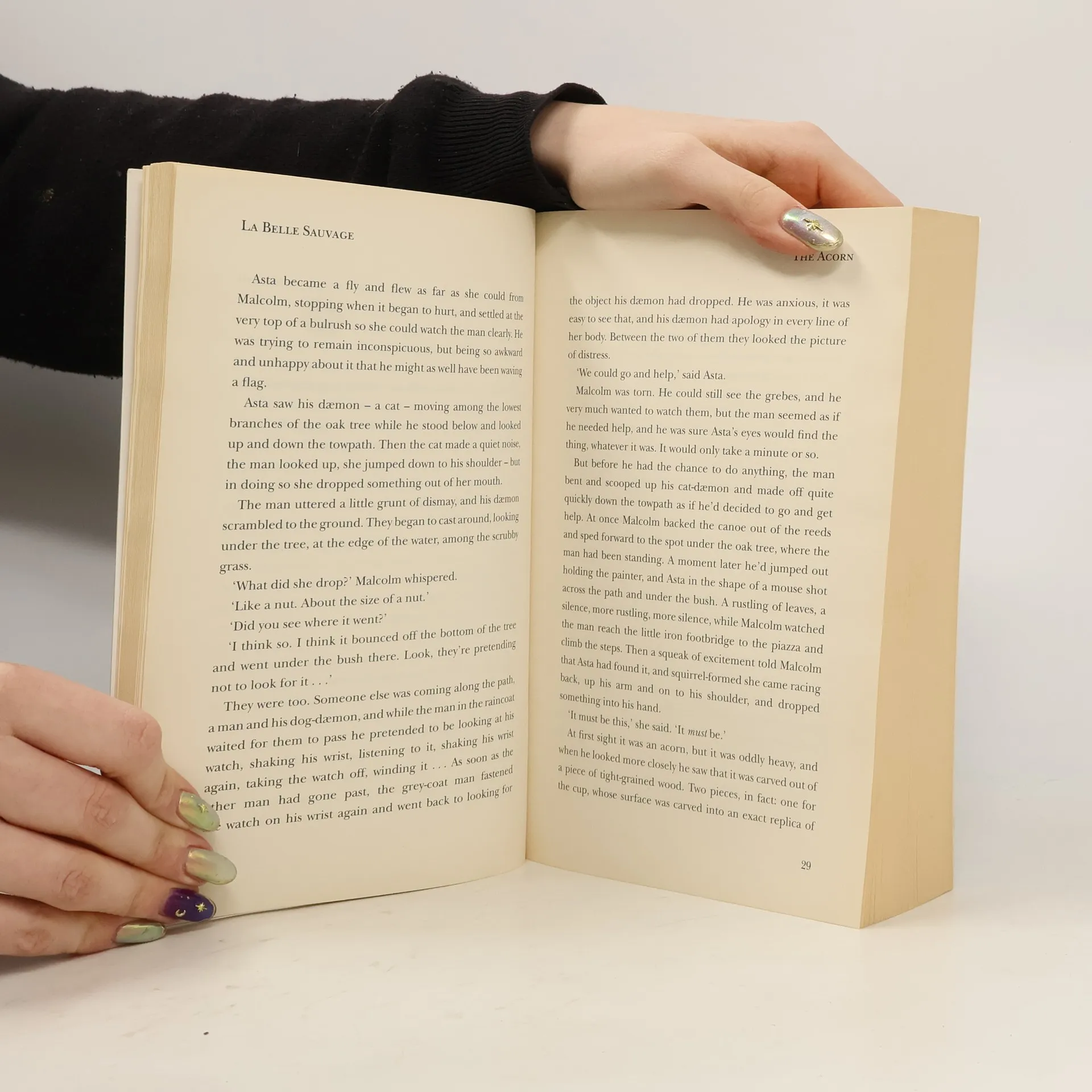 Eleven-year-old Malcolm Polstead and his dæmon, Asta, live with his parents at the Trout Inn near Oxford. Across the River Thames (which Malcolm navigates often using his beloved canoe, a boat by the name of La Belle Sauvage) is the Godstow Priory where the nuns live. Malcolm learns they have a guest with them, a baby by the name of Lyra Belacqua..