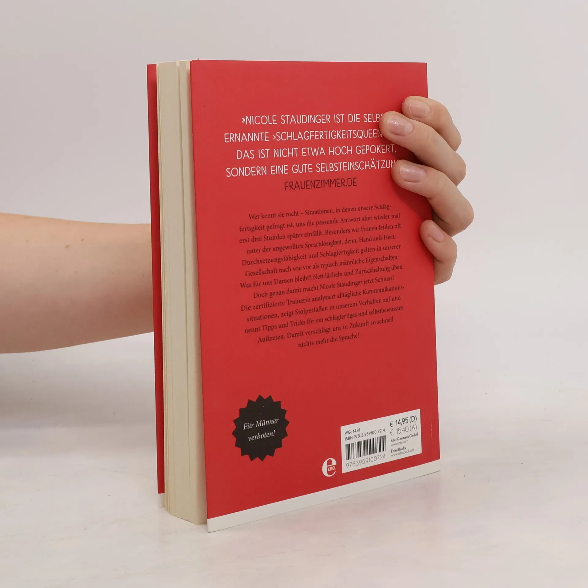 Wer kennt sie nicht – Situationen, in denen unsere Schlagfertigkeit gefragt ist, uns die passende Antwort aber wieder mal erst drei Stunden später einfällt. Besonders wir Frauen leiden oft unter der ungewollten Sprachlosigkeit, denn, Hand aufs Herz: Durchsetzungsfähigkeit und Schlagfertigkeit gelten in unserer Gesellschaft nach wie vor als typisch männliche Eigenschaften. Was für uns Damen bleibt? Nett lächeln und Zurückhaltung üben. Doch genau damit macht Nicole Staudinger jetzt Schluss! Die zertifizierte Trainerin analysiert alltägliche Kommunikationssituationen, zeigt Stolperfallen in unserem Verhalten auf und nennt Tipps und Tricks für ein schlagfertiges und selbstbewusstes Auftreten. Damit verschlägt uns in Zukunft so schnell nichts mehr die Sprache!