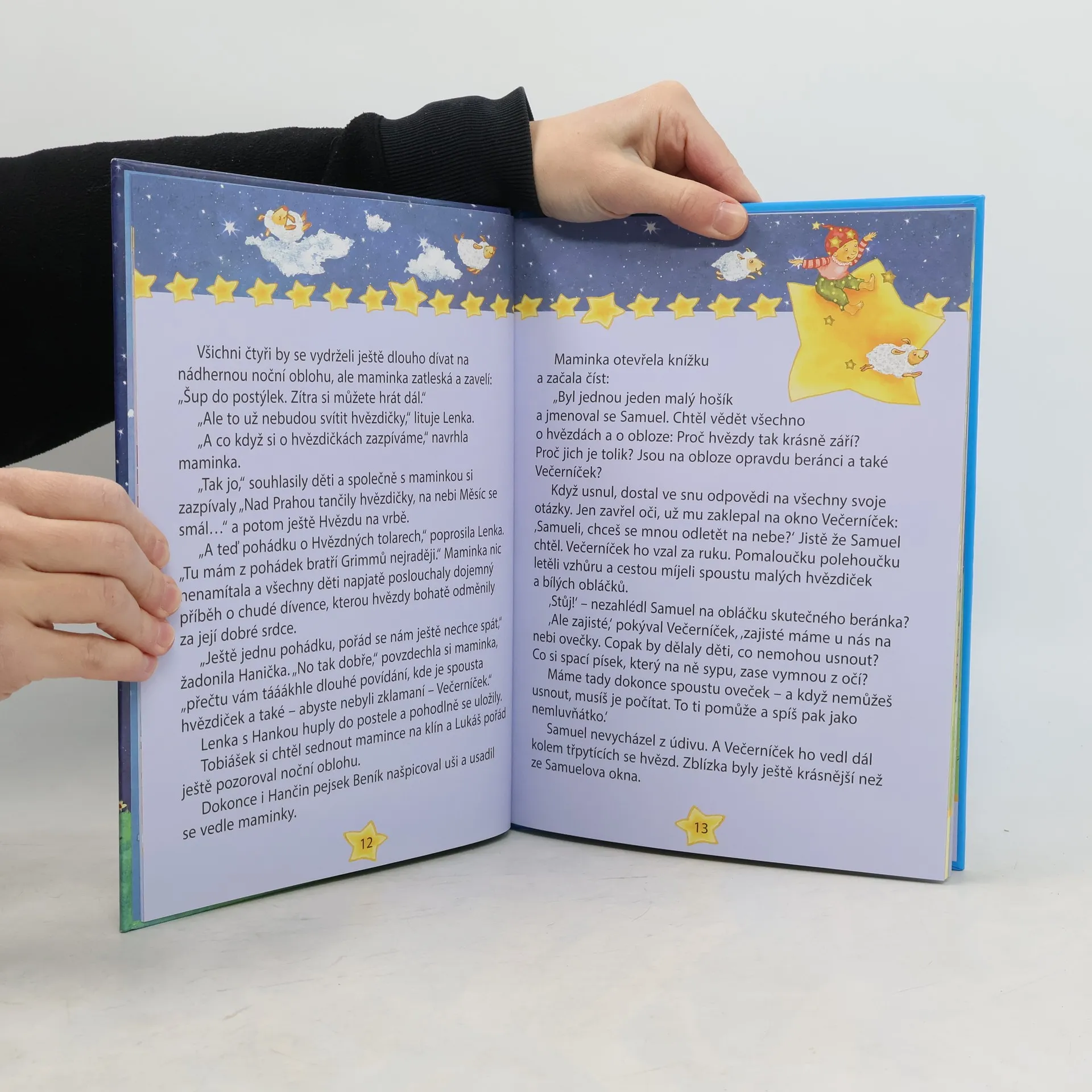 Příběhy před spaním s velkými písmeny. V této půvabné knížce, ilustrované s láskou a fantazií, najdete roztomilé příběhy na dobrou noc - o hvězdičkách, o usínání a snech, o sluníčku a počasí, o měsíčku a jeho proměnách, o přátelství, o ročních obdobích, o dětech a o tom, co rády dělají. Je vytištěna velkými písmeny a na každé straně bohatě ilustrována. Je určena k procvičování čtení nebo předčítání, ale i k vyprávění a snění!
