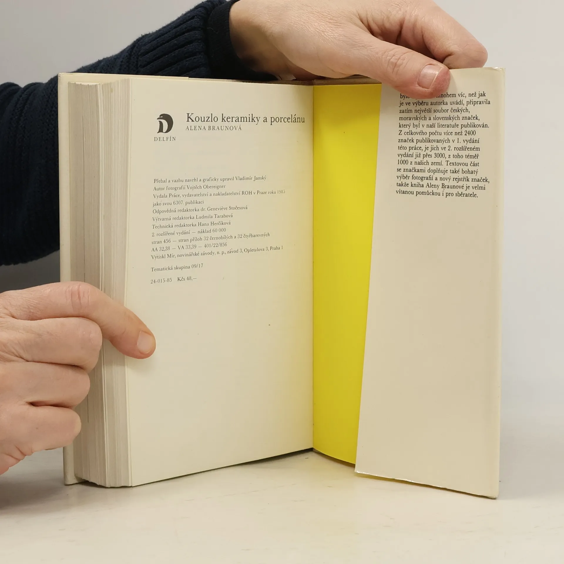 Dílo Aleny Braunové, jak sama v úvodu konstatuje, "není a ani nemíní být žádnou odbornou vědeckou prací"; je poutavým čtením přibližujícím nám porcelán od dob, kdy byl jen výsadou králů a jim bohatstvím naroveň postavených velmožů, předmětem tajných diplomatických poslání i středem zájmů nejrůznějších podvodníků a spekulantů. Po krátkém zastavení u největších a nejvýznamnějších porcelánek Evropy, především v Míšni, Vídni a Sevres, se autorka zabývá hlavně manufakturami a továrnami na našem území, a to nejen porcelánkami, ale i středisky významné lidové moravské a slovenské keramiky. Kniha obsahuje ve výběru přes 3000 značek, z toho téměř 100 z našich území. Textovou část se značkami doplňuje bohatý výběr fotografií a rejstřík značek, takže kniha je vítanou pomůckou pro sběratele. 2. rozšířené vydání