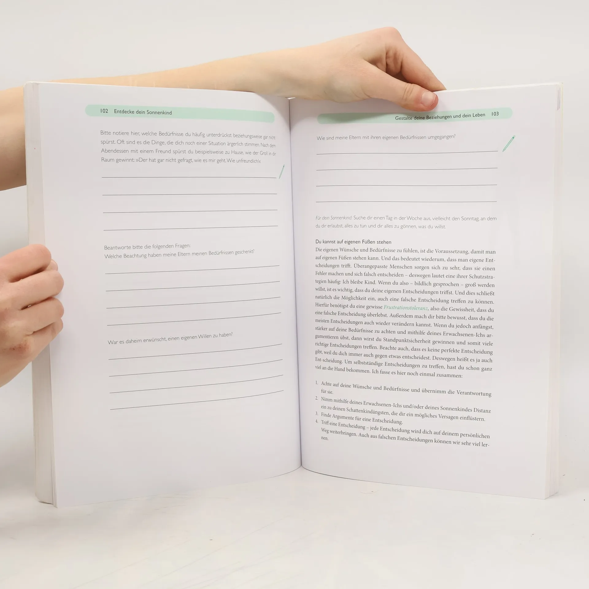 Das Arbeitsbuch zum Spiegel-Bestseller Mit ihrem Bestseller »Das Kind in dir muss Heimat finden« verhalf Stefanie Stahl Millionen von Menschen dazu, die enorme Kraft der Arbeit mit dem inneren Kind für sich zu entdecken. Dieses Praxisbuch vermittelt nun ein umfassendes Programm für ein starkes Ich: Schritt 1: Lerne dein Schattenkind kennen – den Persönlichkeitsanteil, der für negative Kindheitserlebnisse und Traumatisierungen steht. Schritt 2: Stärke dein Erwachsenen-Ich – den rationalen Anteil, der für die Lösung von Problemen unverzichtbar ist. Schritt 3: Entdecke dein Sonnenkind – den gesunden, starken und fröhlichen Persönlichkeitsanteil. Mit zahlreichen neuen Übungen sowie 6 heraustrennbaren Schablonen für die individuelle Arbeit mit dem Sonnen- und Schattenkind. Entdecken Sie auch das Hauptwerk »Das Kind in dir muss Heimat finden« von Stefanie Stahl, aus dem das Arbeitsbuch entstanden ist. Ausstattung: Abbildungen,6 heraustrennbare Schablonen; durchgehend zweifarbig