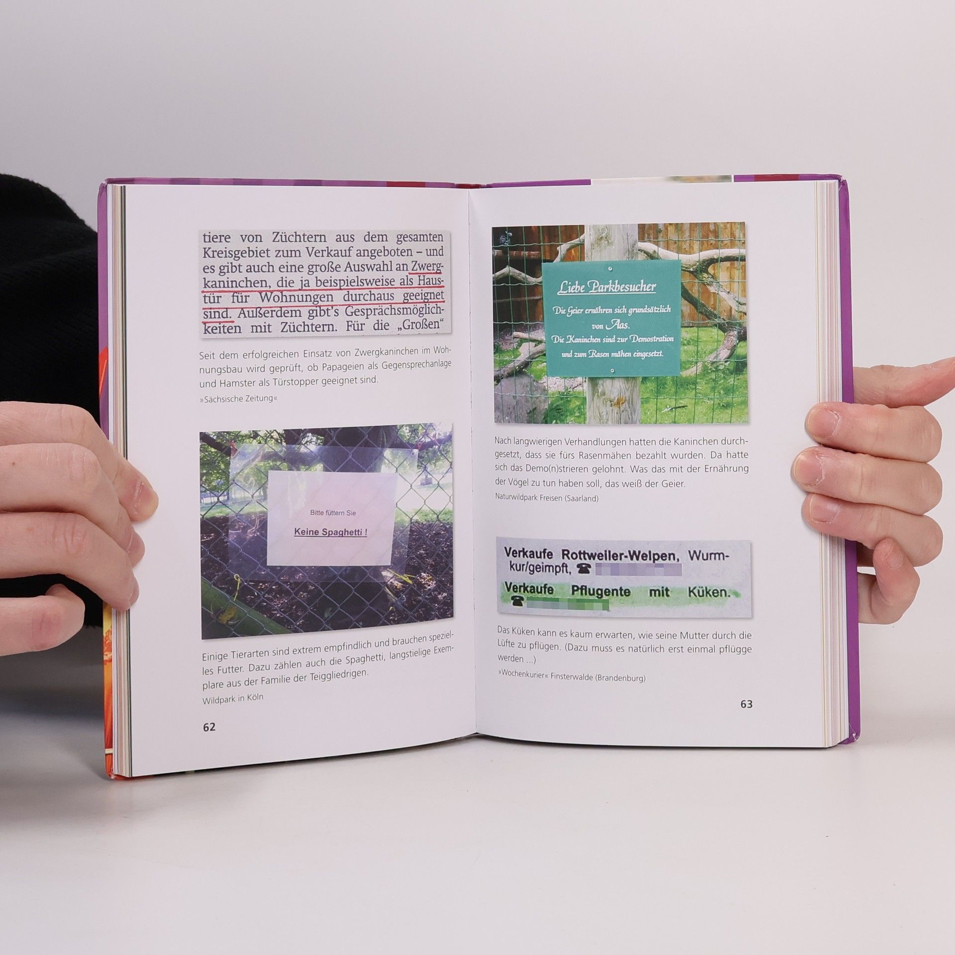 »Nur für Leerpersonal« Haben Sie schon mal »panische Orangen« probiert? Wissen Sie, ob Paprika-Schotten wirklich aus Schottland kommen und wo der Camen-Bär zu Hause ist? Dann nichts wie ran an den Specht! Bastian Sicks »Happy Aua«-Reihe hat längst Kultstatus erreicht. Nun erscheint der sechste Band – wiederum prall gefüllt mit den unglaublichsten Fundstücken aus dem Sprachalltag. Denn der Fehlerteufel treibt munter weiter sein Unwesen und denkt gar nicht daran, unseren Lachmuskeln eine Pause zu gönnen. Wer die Tücken der Sprache kennt, der weiß: Schon ein Bauchstabe kann alles verändern. Ob in Überschriften wie »Immer mehr Flüchtlinge kommen über die Balkon-Route« oder der Warnung vor einer »Ansteckung mit dem Zicken-Virus«. Schlagen Sie dem Teufel ein Schnäppchen beim Kauf einer zeitlos eleganten »Biesnestasche« oder eines Brautkleides mit »Paletten im Brustbereich«. Und was du heute nicht kannst besorgen, das bekommst du ganz bestimmt morgen, denn wie heißt es in einem Schaufensteraushang in Brandenburg so schön: Morgen haben wir wieder für Sie da!
