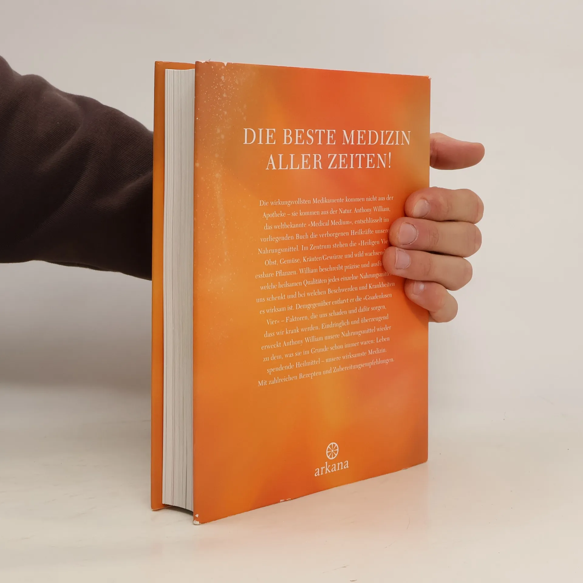 Warum Obst und Gemüse als Heilmittel potenter sind als jedes Medikament. Anthony William hat mit seinen medialen medizinischen Fähigkeiten Tausenden Menschen geholfen ihre fehl-diagnostizierten oder falsch behandelten Krankheiten zu heilen. In seinem zweiten Buch entschlüsselt er die verborgenen Heilkräfte unserer Nahrungsmittel. Im Zentrum stehen die »heiligen Vier«: Obst, Gemüse, Kräuter/Gewürze und wild wachsende essbare Pflanzen. William beschreibt präzise und ausführlich, welche heilsamen Qualitäten jedes einzelne Nahrungsmittel uns schenkt und bei welchen Beschwerden und Krankheiten es wirksam ist. Außerdem offenbart er spannendes Hintergrundwissen zu Themen wie Heißhunger, Stress oder die Schlüsselrolle, die Obst bei der Fruchtbarkeit spielt. Demgegenüber entlarvt er die »ungünstigen Vier«: jene Faktoren, die uns schaden und dafür sorgen, dass wir krank werden. Eindringlich und überzeugend erweckt Anthony William unsere Nahrungsmittel wieder zu dem, was sie im Grunde schon immer waren: Leben spendende Heilmittel – unsere wirksamste Medizin. Mit zahlreichen Rezepten und Zubereitungsempfehlungen. Ausstattung: vierfarbig