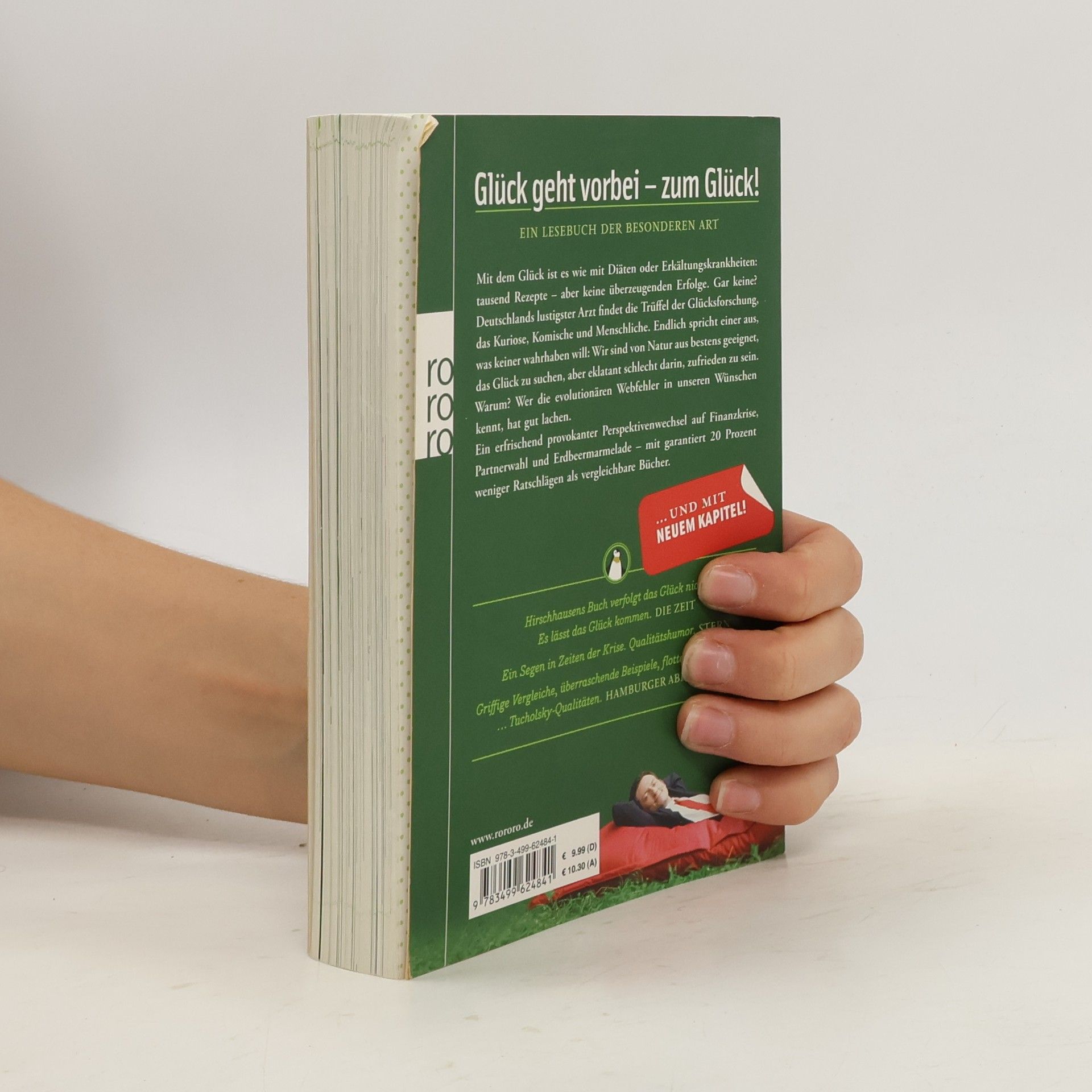 Der Bestseller mit neuem Kapitel!Glück geht vorbei – zum Glück!Ein Lesebuch der besonderen ArtMit dem Glück ist es wie mit Diäten oder Erkältungskrankheiten: tausend Rezepte – aber keine überzeugenden Erfolge. Gar keine? Deutschlands lustigster Arzt findet die Trüffel der Glücksforschung, das Kuriose, Komische und Menschliche. Endlich spricht einer aus, was keiner wahrhaben will: Wir sind von Natur aus bestens geeignet, das Glück zu suchen, aber eklatant schlecht darin, zufrieden zu sein. Warum? Wer die evolutionären Webfehler in unseren Wünschen kennt, hat gut lachen. Ein erfrischend provokanter Perspektivenwechsel auf Finanzkrise, Partnerwahl und Erdbeermarmelade – mit garantiert 20 Prozent weniger Ratschlägen als vergleichbare Bücher.«Hirschhausens Buch verfolgt das Glück nicht. Es lässt das Glück kommen.» Die Zeit «Ein Segen in Zeiten der Krise. Qualitätshumor.» STERN «Griffige Vergleiche, überraschende Beispiele, flotte Formulierungen …Tucholsky-Qualitäten.»Hamburger Abendblatt