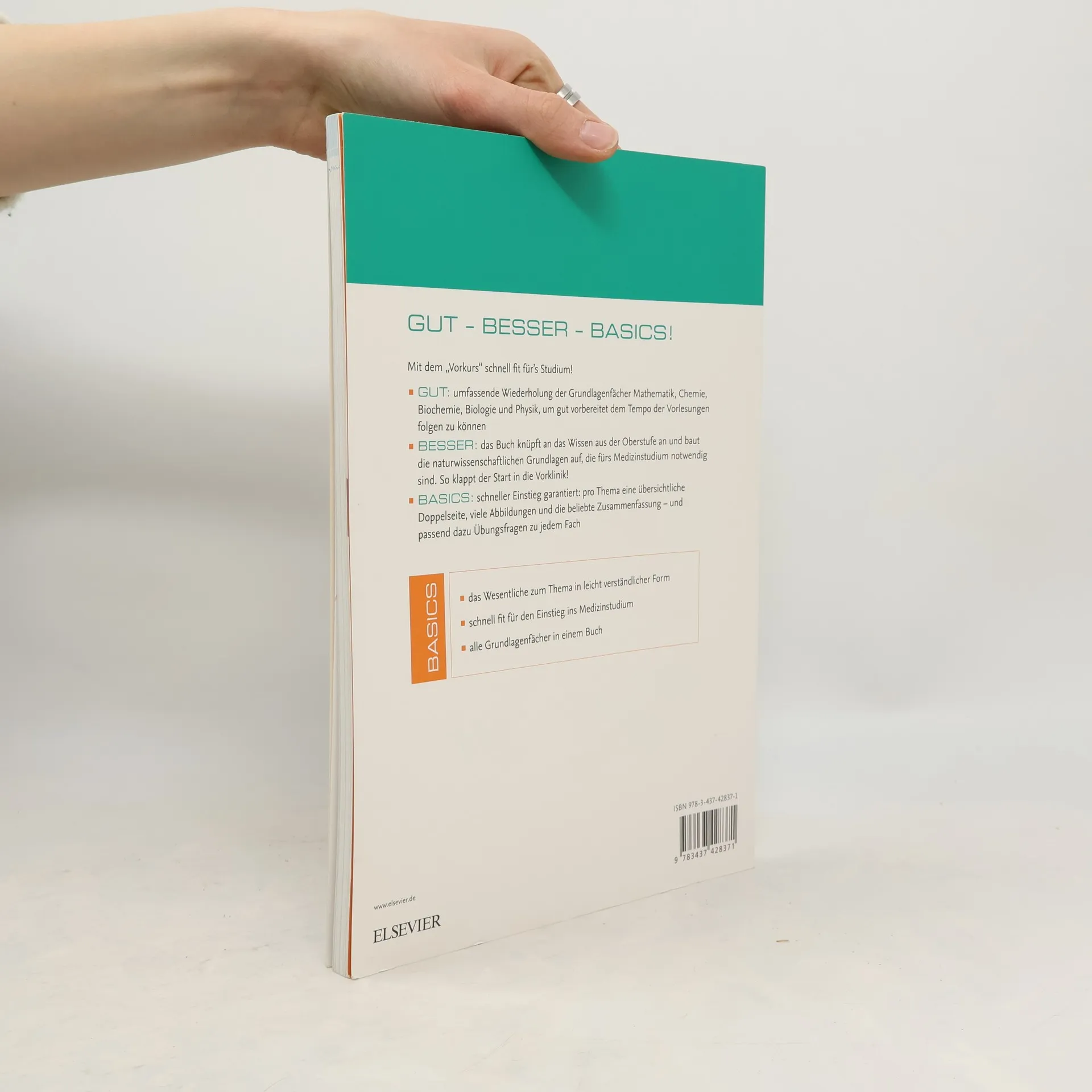 Mit dem „Vorkurs Medizin" schnell fit fürs Medizinstudium! GUT: umfassende Wiederholung der Grundlagenfächer Mathematik, Chemie, Biochemie, Biologie und Physik, damit Sie gut vorbereitet dem Tempo der Vorlesungen folgen können. BESSER: das Buch knüpft an das Wissen aus der Oberstufe an und baut die naturwissenschaftlichen Grundlagen auf, die fürs Medizinstudium notwendig sind. So klappt der Start in die Vorklinik! BASICS: schneller Einstieg garantiert: pro Thema eine übersichtliche Doppelseite, viele Abbildungen und die beliebte Zusammenfassung – und passend dazu Übungsfragen zu jedem Fach. Das sind Ihre Vorteile: das Wesentliche zum Thema in leicht verständlicher Form schnell fit für den Einstieg ins Medizinstudium alle Grundlagenfächer in einem Buch