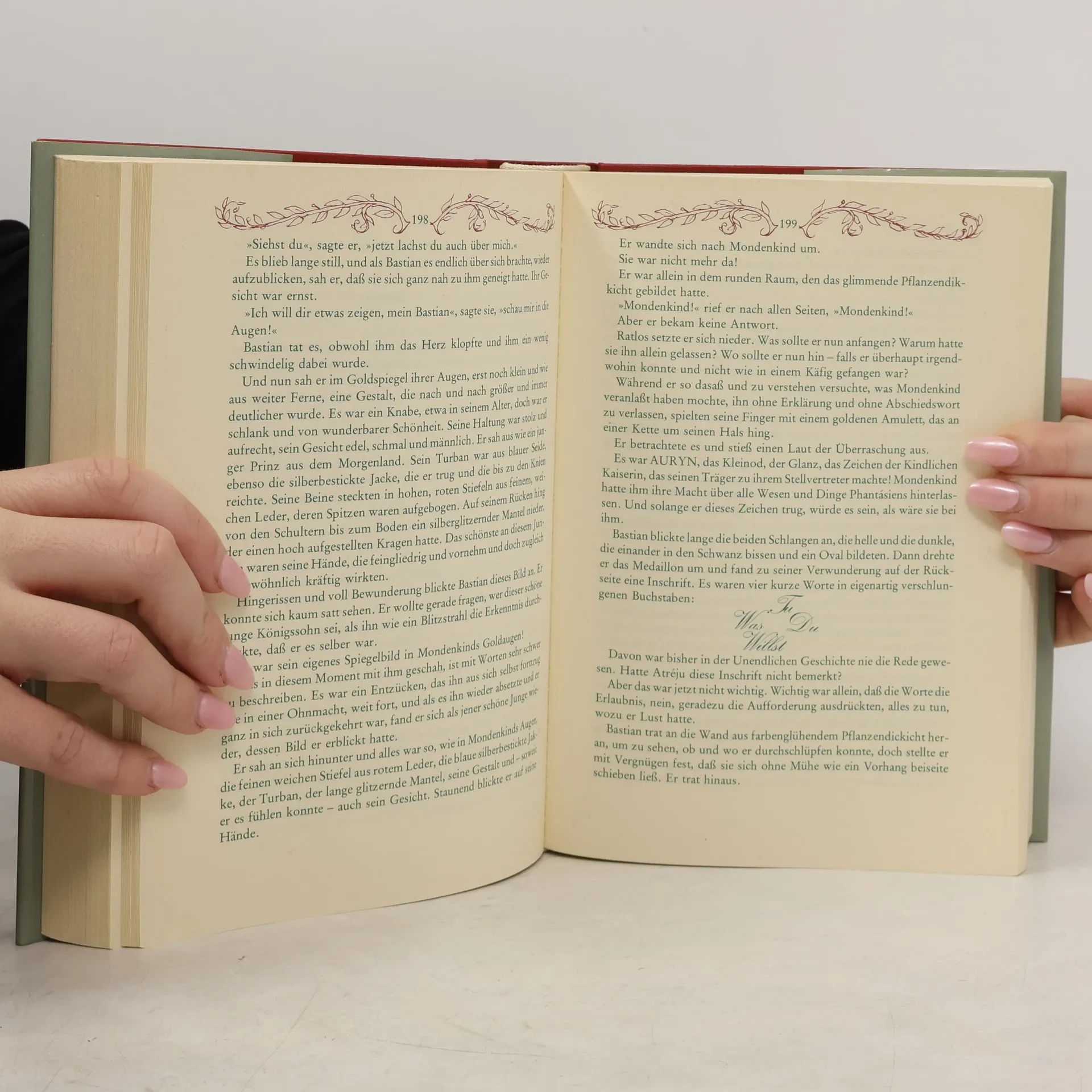 Der zehnjährige dickliche Bastian Balthasar Bux flüchtet sich vor den Nachstellungen der Schulkameraden in ein Antiquariat, wo ihn der Beginn eines Buches fasziniert, dessen Titel immer währendes Träumen verspricht. Bastian entwendet Die unendliche Geschichte und verliert sich auf dem Schulspeicher immer mehr in deren Lektüre: Die zunehmende Identifikation mit dem Helden Atréju ermöglicht ihm den Eintritt in die »Anderswelt«, in der er zum entscheidenden Protagonisten wird. Als Grenzgänger aus der Menschenwelt kommt ihm die Aufgabe zu, das vom »Nichts« bedrohte Phantásien und mit ihm dessen sterbenskranke »Kindliche Kaiserin« zu retten. Nach zahllosen Abenteuern auf dem Weg zu sich selbst, der von fantastischen Gestalten und mystischen Erkenntnissen gesäumt ist, löst Bastian mit Hilfe des »Wahren Willens« nicht nur seine Aufgabe, ihm gelingt auch die Rückkehr in die Realität, die er nun bewältigen kann.
