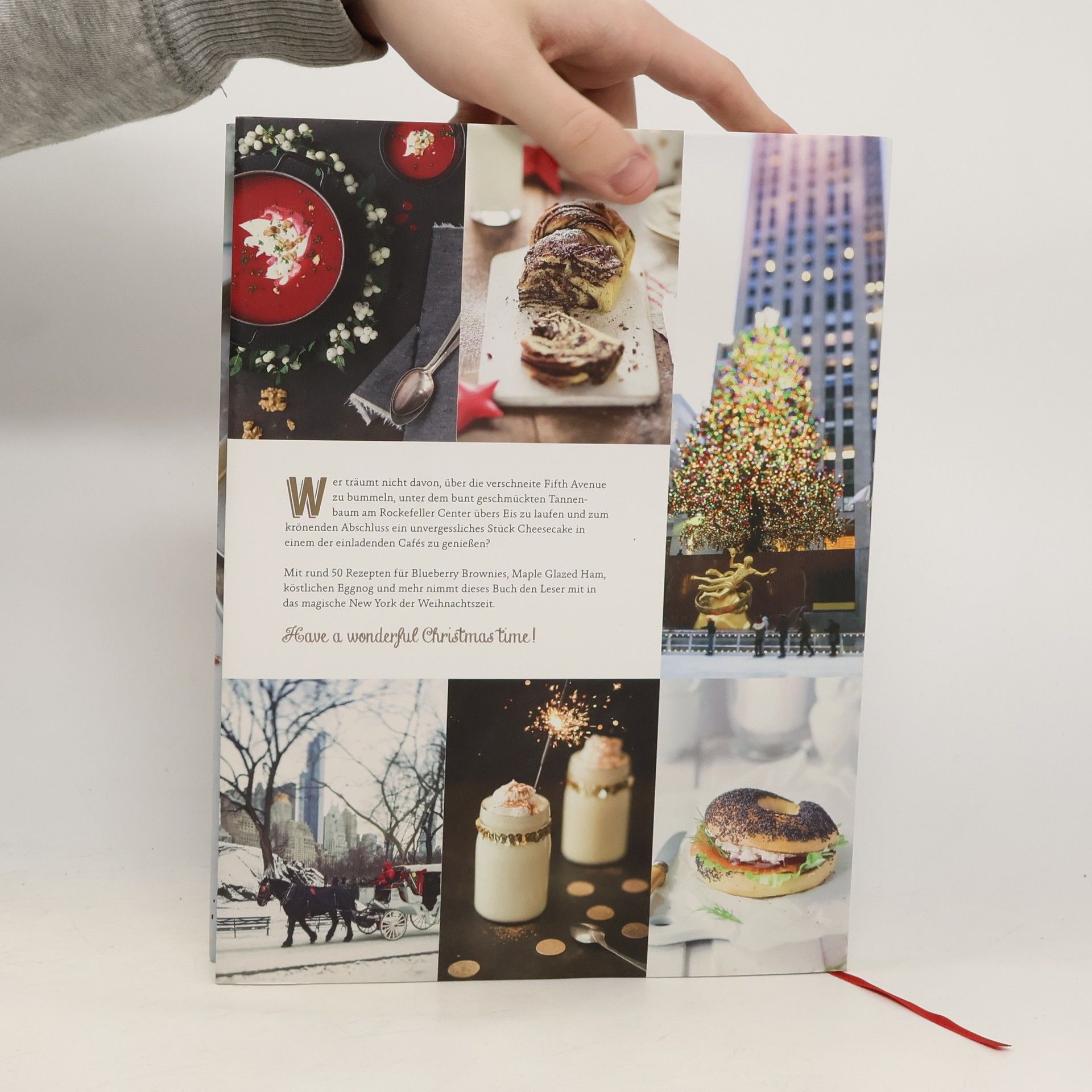 Ein Ausflug in das magische New York der Vorweihnachtszeit: Wenn bunte Lichter die Fassaden schmücken, allerorten Jingle Bells erklingt und kulinarische Hochgenüsse zum Schlemmen einladen. Wer träumt nicht davon, über die verschneite 5th Avenue zu bummeln, unter dem imposanten Tannenbaum am Rockefeller Center übers Eis zu laufen und zum krönenden Abschluss ein köstliches Stück Pumpkin Pie in einem der unzähligen Cafés zu genießen? Mit 50 Rezepten für Pancakes, Maple Glazed Ham und einen unvergesslichen Cheesecake sowie den schönsten Weihnachtsgeschichten aus dem Big Apple lässt uns dieses Kochbuch in der eigenen Küche am Traum von weißer Weihnacht teilhaben.
