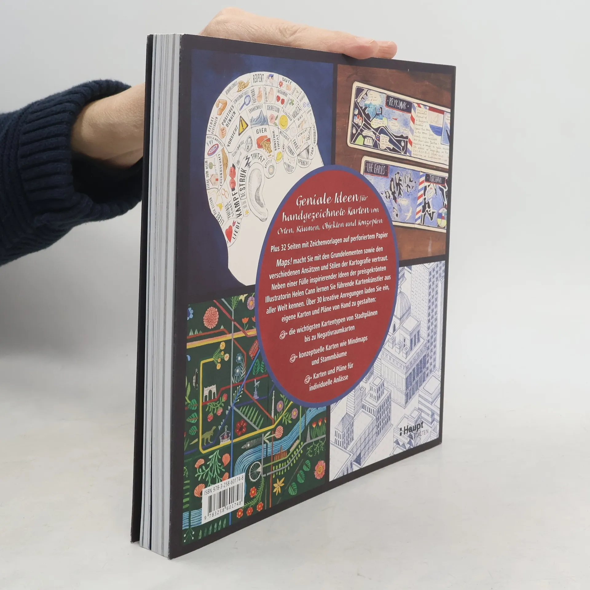 Vom Stadtplan bis zur Mind-Map: geniale Ideen für handgezeichnete Karten von Orten, Räumen, Objekten und Konzepten. Analog ist in: Selbst gestaltete Karten lassen sich vielfältig nutzen und schenken. 32 Seiten mit Zeichenvorlagen auf perforiertem Papier. «Maps!» zeigt anhand einer Fülle kreativer Beispiele, wie Karten und Pläne selbst gezeichnet werden können. Denn Landkarten selber zu zeichnen macht Spaß und weckt Erinnerungen an vergangene Reisen, von Hand gezeichnete Schatzkarten sind tolle Geschenke und Mind-Maps sorgen für neue Anregungen. Die preisgekrönte Illustratorin Helen Cann macht zunächst mit den verschiedenen Ansätzen und Stilen der Kartografie vertraut. Mit vielen Tipps zeigt sie, wie man eine dreidimensionale Landschaft auf eine Fläche bannt, seien es Bauzeichnungen, U-Bahn-Pläne oder Landkarten. Dann geht es weiter zu abstrakten Konzepten, wie Verwandtschaftsverhältnissen und anatomischen Strukturen. Über 30 kreative Anregungen laden dazu ein, eigene Karten und Pläne von Hand zu gestalten. Neben den zahlreichen inspirierenden Ideen der Autorin sind weitere internationale Kartenkünstler aus aller Welt versammelt.