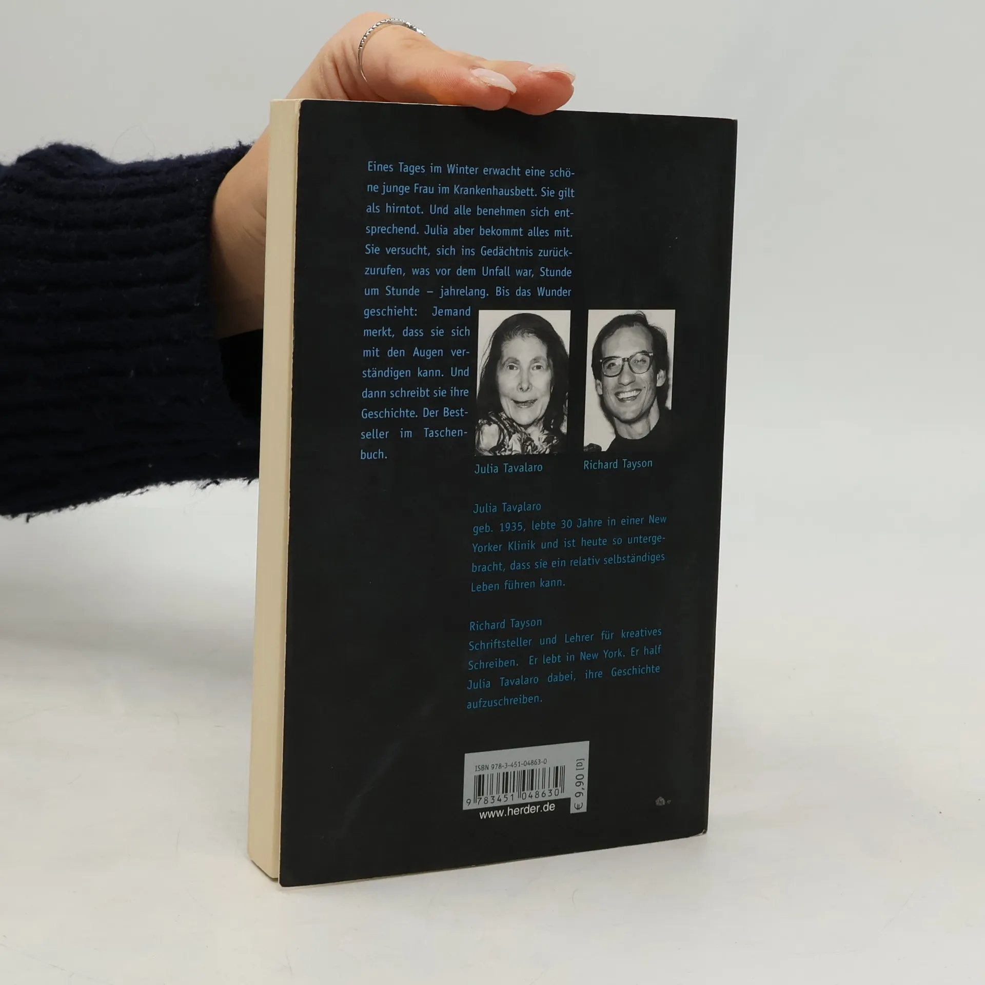 Eines Tages im Winter erwacht eine schöne junge Frau im Krankenhausbett. Sie gilt als hirntot. Und alle benehmen sich entsprechend. Julia aber bekommt alles mit. Sie versucht, sich ins Gedächtnis zurückzurufen, was vor dem Unfall war, Stunde um Stunde - jahrelang. Bis das Wunder geschieht: Jemand merkt, dass sie sich mit den Augen verständigen kann. Und dann schreibt sie ihre Geschichte. Der Bestseller im Taschenbuch.