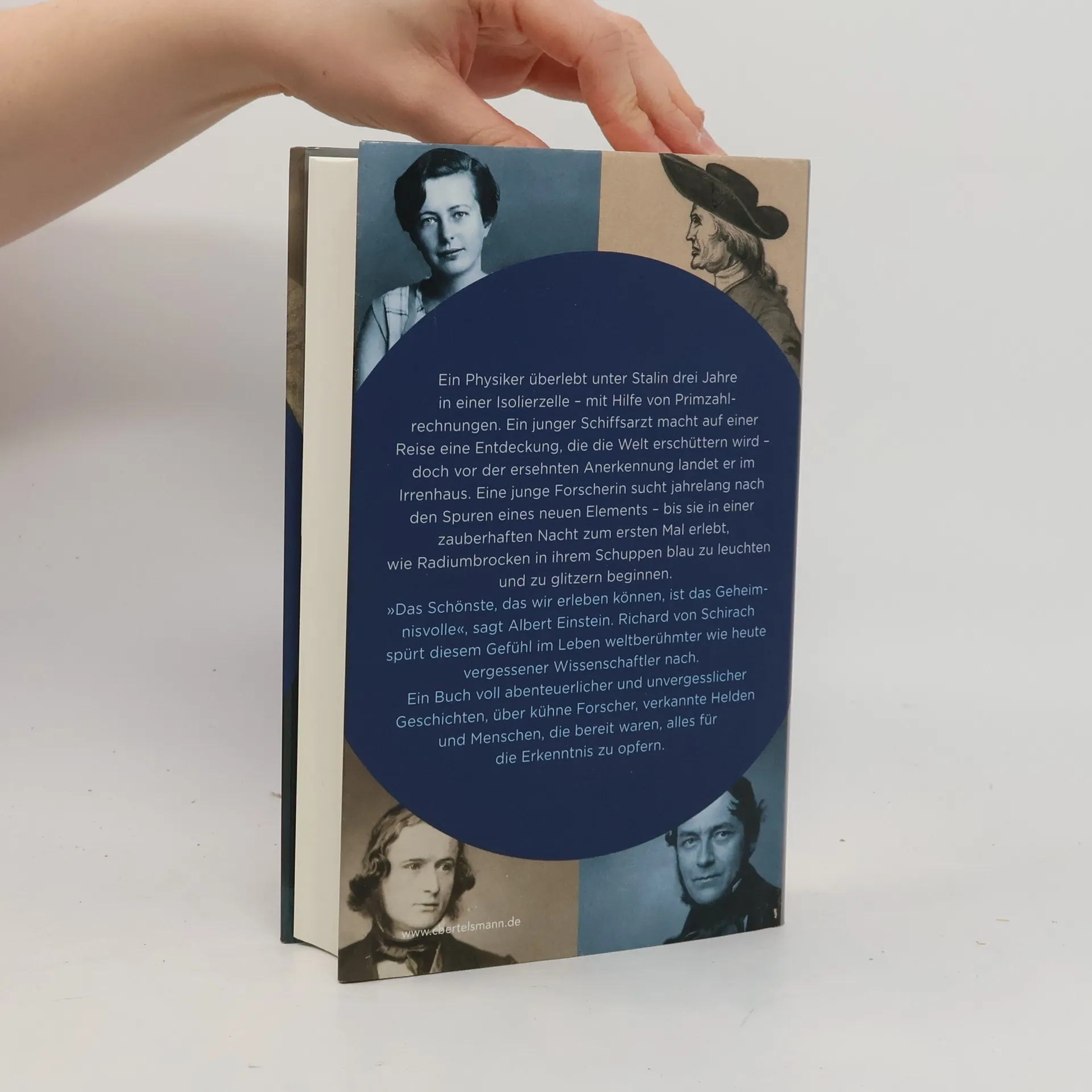 Ein etwas verschroben wirkender Engländer von fast siebzig Jahren bestimmt 1780 mit Hilfe von Bleikugeln, Seilzügen und Balken das Gewicht der Erde: Henry Cavendish kommt nach tausenden Messtunden zu einem verblüffend genauen Ergebnis. Ein junger Schiffsarzt stellt um 1840 Beobachtungen zur Temperatur von Wellenspitzen an und entdeckt dabei eines der wichtigsten physikalischen Gesetze: Robert von Mayer findet jedoch kein Gehör und landet im Irrenhaus. Ein genialer junger Physiker aus Deutschland gerät in die Säuberungsmaschinerie Stalins: Die dreijährige Einzelhaft überlebt Friedrich Houtermans, indem er allein im Kopf eine geniale Beweisführung über das Verhalten von Primzahlen anstellt, weil Papier und Stifte verboten sind. Richard von Schirach erzählt unbekannte, kuriose, erschütternde Geschichten von den Menschen hinter weltverändernden Entdeckungen; von ihrer fast kindlichen Glückseligkeit, ihrer tiefen Ehrfurcht vor der Schönheit der Schöpfung und ihrer manchmal verrückt anmutenden Kühnheit.