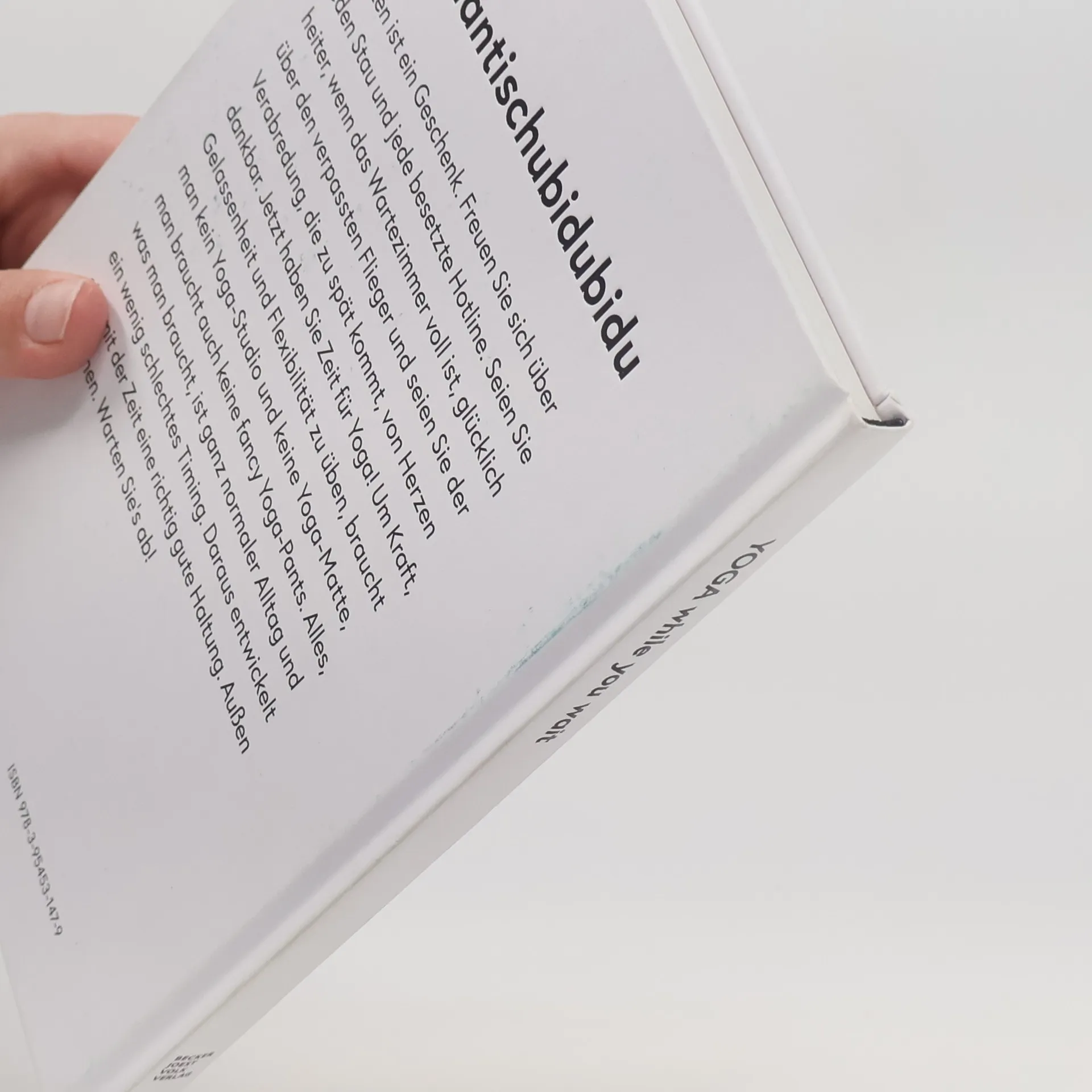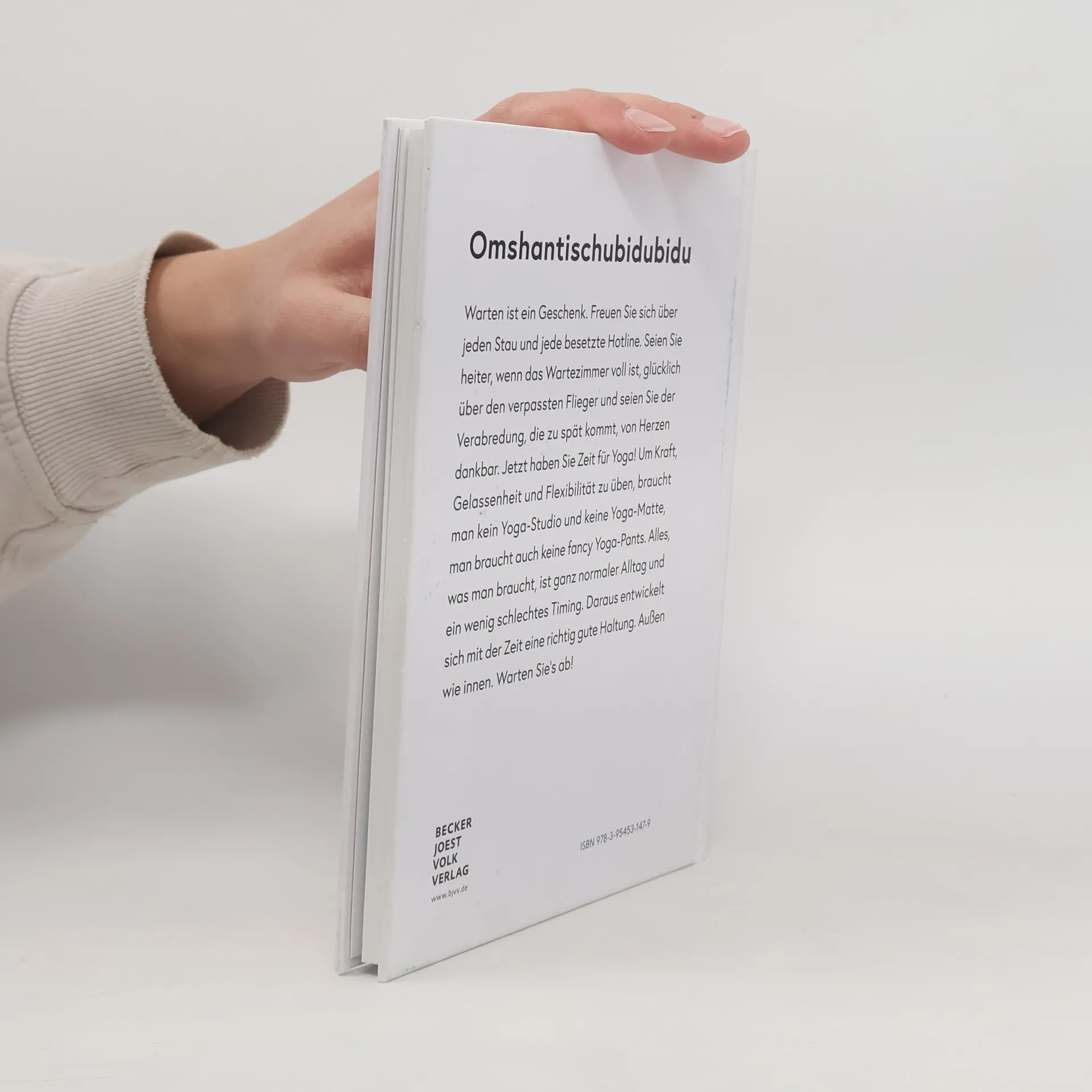 Warten ist ein Geschenk. Freuen Sie sich über jeden Stau und jede besetzte Hotline. Seien Sie heiter, wenn das Wartezimmer voll ist, glücklich über den verpassten Flieger und seien Sie der Verabredung, die zu spät kommt, von Herzen dankbar. Jetzt haben Sie Zeit für Yoga! Um Kraft, Gelassenheit und Flexibilität zu üben, braucht man kein Yoga-Studio und keine Yoga-Matte, man braucht auch keine fancy Yoga-Pants. Alles was man braucht, ist ganz normaler Alltag und ein wenig schlechtes Timing. Daraus entwickelt sich mit der Zeit eine richtig gute Haltung. Außen wie innen. Warten Sie's ab. Omshantischubidubidu. Endlich ein Yoga-Buch, das den ernst zu nehmenden Megatrend Yoga mal mit dem längst überfälligen Humor und einer gesunden Prise Selbstironie betrachtet. Es sendet ein Augenzwinkern an jene, die Yoga machen, und eine Einladung an solche, die es noch nicht tun, da und dort und ohne jeden Zeitaufwand eine Übung ins Leben zu integrieren. Es kombiniert sachliche, hochwertige Ästhetik mit subtilem Humor und künstlerische Fotografie mit lustigem Text. On Top gibt es fachlich fundierte Anleitungen, und erfrischenderweise wachsen in diesem Yoga-Buch weit und breit keine Lotusblüten. Judith Stoletzky und Markus Abele haben das gemeinsame Arbeiten seit Jahren geübt und können es inzwischen freihändig und mit geschlossenen Augen. Jetzt auch in englischer Sprache überall erhältlich!