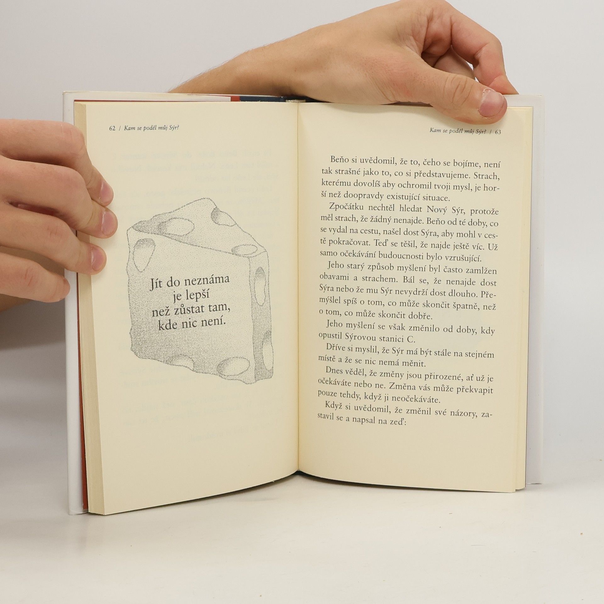 Jedná se o podobenství, které odhaluje hluboké pravdy o změně. Je to zábavný a poučný příběh o čtyřech zajímavých postavičkách, které žijí v „Bludišti“, kde hledají „Sýr“. Sýr je metaforou toho, co v životě chceme, ať už je to zaměstnání, partnerský vztah, peníze, dům, svoboda, dobré zdraví, společenské uznání nebo duševní vyrovnanost. Bludiště je místo, kde hledáme to, co chceme.
