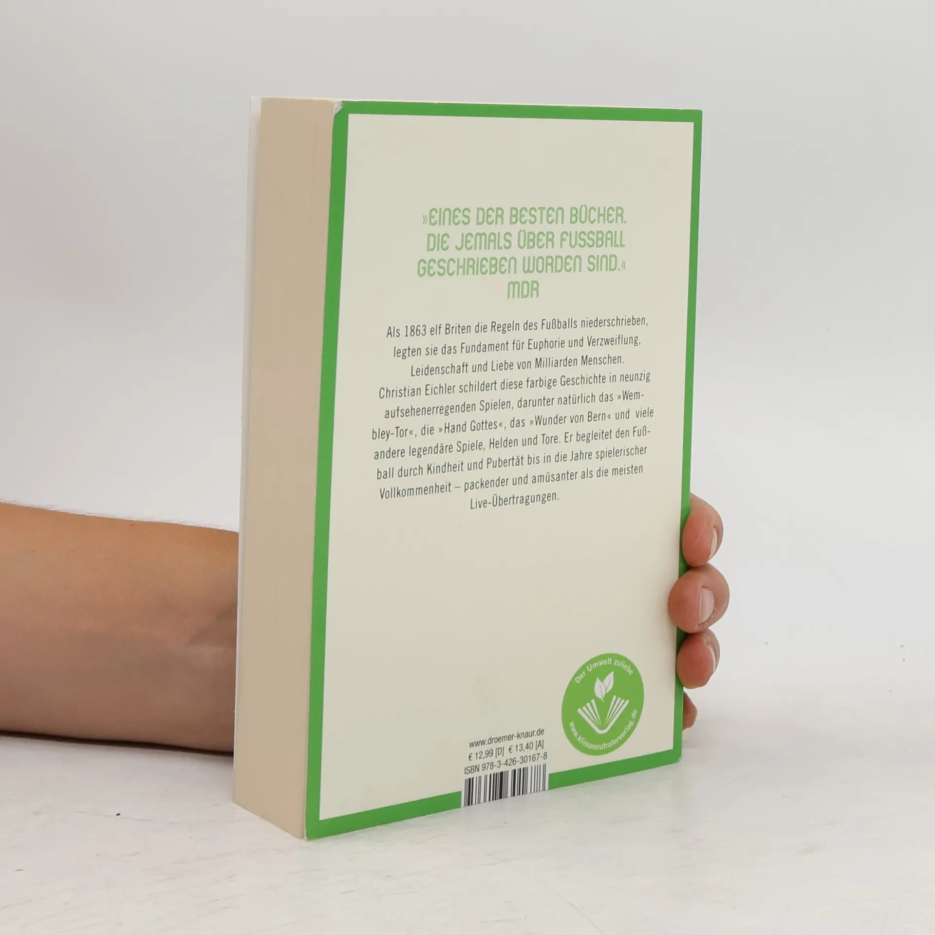 Als 1863 elf Briten die Regeln des Fußballs niederschrieben, legten sie das Fundament für Euphorie und Verzweiflung, Leidenschaft und Liebe von Milliarden Menschen. Christian Eichler erzählt diese farbige Geschichte des Fußballs in 90 aufsehenerregenden Spielen. Eichler erzählt ebenso vom „Wunder von Bern“, vom „Wembley-Tor“, vom „Meister der Herzen“ wie vom Fußballkrieg zwischen El Salvador und Honduras – als blutigem Ergebnis eines 3:0. Er zeigt die „Hand Gottes“ und wie einzelne Helden ein Match entscheiden, er berichtet von politischen Manipulationen und von Hooligan-Hass. Eichler begleitet den Fußball durch Kindheit und Pubertät bis in die Jahre spielerischer Vollkommenheit – und schreibt so den Bildungsroman dieses weltweit größten Sports.