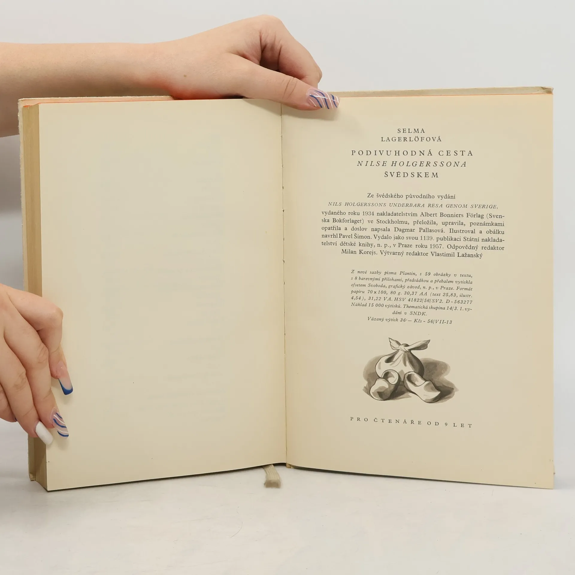 Kapitoly: Chlapec, Akka z Kebnekajsy, Život divokých ptákú, Dúm Glimminge, Velký jeřábí tanec na Kullabergu, V dešti, Schody o třech stupních, U řeky Ronneby, Karlskrona, Cesta na Oland, Jižní mys Olandu, Malý Karlúv ostrov, Dvě města, Pověst o Smalandu, Vrány, Stará selka, S Tabergu do Huskvarny, Velké ptačí jezero, Věštba, Látka z hrubé vlny, Vyprávění o Karrovi a Šedákovi, V Närke, Ledy táhnou, V hornické oblasti, Větší podíl, Valpružina noc, U kostelú, Povodeň, V Uppsale, Jemnopérka, Stockholm, Orel Gorgo, Přes Gästrikland, Den v Hälsinglandu, Jitro v Angermanlandu, Västerbotten a Laponsko, Asa husopaska a Matýsek, U Laponcú, K jihu, k jihu, Värmland a Dalsland, Poklad na šéře, Cesta do Vemmenhogu, Rozloučení s divokými husami. První vydání v SNDK. Cena knihy v čase vydání: 36 Kčs.