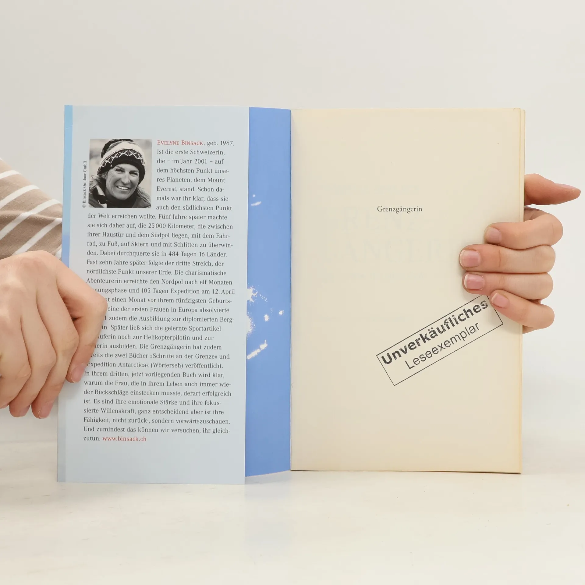 Evelyne Binsack, geb. 1967, ist die erste Schweizerin, die – im Jahr 2001 – auf dem höchsten Punkt unseres Planeten, dem Mount Everest, stand. Schon damals war ihr klar, dass sie auch den südlichsten Punkt der Welt erreichen wollte. Fünf Jahre später machte sie sich daher auf, die 25 000 Kilometer, die zwischen ihrer Haustür und dem Südpol liegen, mit dem Fahrrad, zu Fuß, auf Skiern und mit Schlitten zu überwinden. Dabei durchquerte sie in 484 Tagen 16 Länder. Fast zehn Jahre später folgte der dritte Streich, der nördlichste Punkt unserer Erde. Die charismatische Abenteurerin erreichte den Nordpol nach elf Monaten Planungsphase und 105 Tagen Expedition am 12. April 2017, gut einen Monat vor ihrem fünfzigsten Geburtstag. Als eine der ersten Frauen in Europa absolvierte sie 1991 zudem die Ausbildung zur diplomierten Bergführerin. Später ließ sich die gelernte Sportartikelverkäuferin noch zur Helikopterpilotin und zur Filmerin ausbilden. Die Grenzgängerin hat zudem bereits die zwei Bücher »Schritte an der Grenze« und »Expedition Antarctica« (Wörterseh) veröffentlicht. In ihrem dritten, jetzt vorliegenden Buch wird klar, warum die Frau, die in ihrem Leben auch immer wieder Rückschläge einstecken musste, derart erfolgreich ist. Es sind ihre emotionale Stärke und ihre fokussierte Willenskraft, ganz entscheidend aber ist ihre Fähigkeit, nicht zurück-, sondern vorwärtszuschauen. Und zumindest das können wir versuchen, ihr gleichzutun.