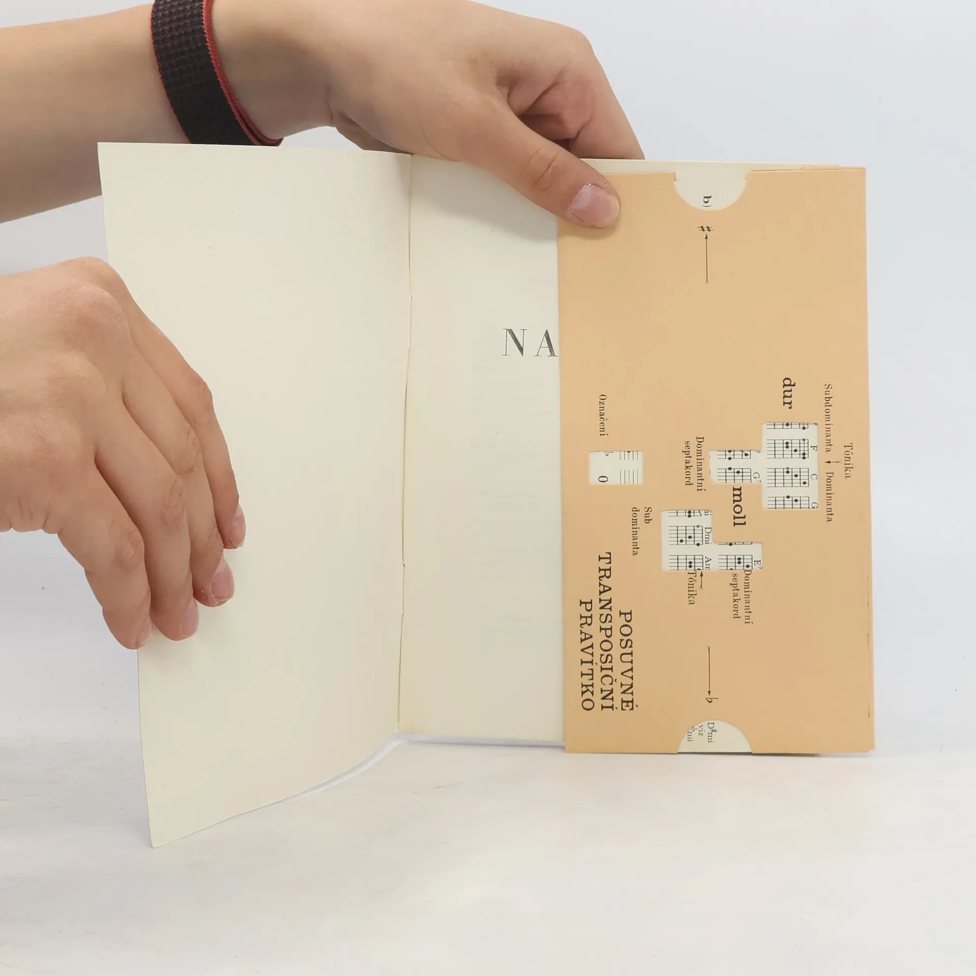 Příručka pro začínající kytaristy s posuvným transpozičním pravítkem. Jednoduché doprovody a přehled akordů na kytaru.