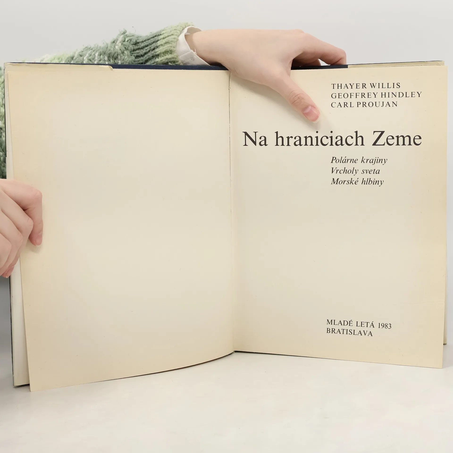 Kapitoly: Zamrznutý svet-Póly Zeme, Severný priechod do Číny, Veľká južná zem, Pátranie po Johnovi Franklinovi, Ozajstný viking, Víťazstvo nad severným pólom, Opreteky na južný pól, Domov víchrice, Záhada "medených" Eskimákov, Shackleton v Antarktíde, Polárne oblasti dnes, Vedecký prieskumAntarktídy. Strecha sveta-Prečo ľudia vystupujú na vrchy, Začiatky, Zlatý vek, Nové trasy a nové techniky, Mimo Álp, Na vrcholy Severnej Ameriky, Čaro juhoamerických velikánov, Výskum Himalájí, V boji s himalájskymi obrami, Nový zlatý vek, Posledné roky a my. Tajomstvá mora-Posledná veľká hranica, Výskum sa začína, Stretnutie Challengera s neznámom, Pod morskou hladinou, Na morskom dne, Rieka v mori, Človek žije v mori, Nové dejiny Zeme, Život je všade, Čo môžeme a čo treba, Veľký prínos.