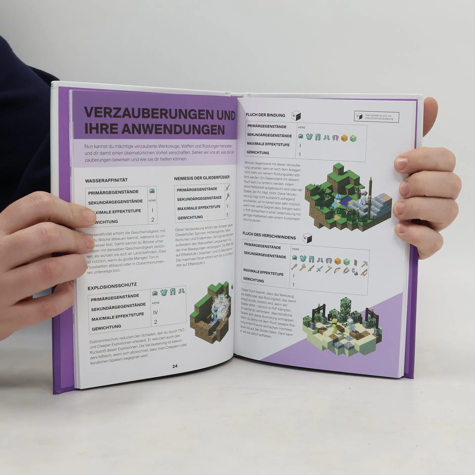 Wer in Minecraft überleben will, sollte auch etwas von Verzauberungen und Tränken verstehen. Ob du nun die ultimative Rüstung herstellen oder dich gegen fiese Gifte schützen willst - ohne die richtigen Zutaten und Rezepte kommst du nicht weit. Überall lauern arglistige Mitspieler und gefährliche Kreaturen, die dir das Leben schwer machen wollen. Gut, wenn man dann das offizielle Handbuch für Zauber und Tränke parat hat!
