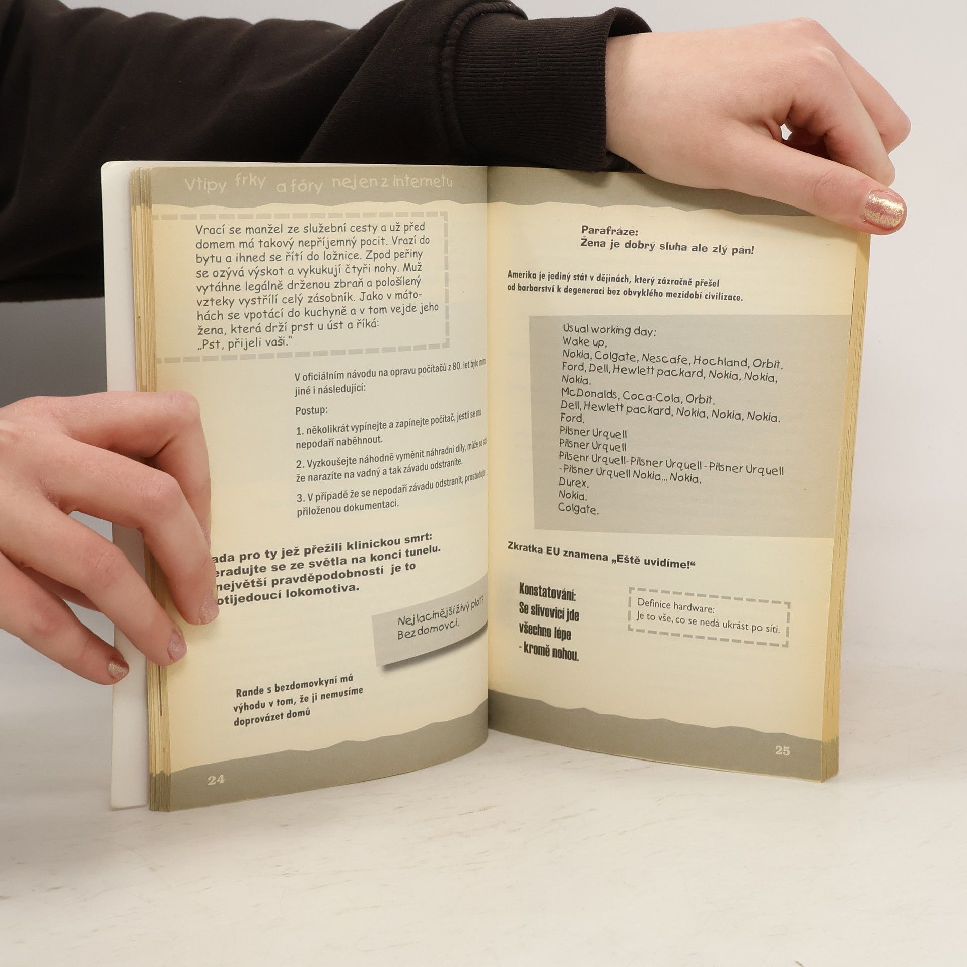 Dnes a denně kolují po internetu tisíce vtípků, fórků a frků. Vzhledem k tomu, že i naše redakce je jimi zaplavována a některé z nich opravdu „stojí za to“, rozhodli jsme se vybočit z našich standardních edičních plánů a zprostředkovat tak trochu netradiční knižní odlehčení i Vám. Představujeme Vám proto knihu, jež přináší výběr dle našeho názoru nejzajímavějších, humorných a mnohdy i lechtivých vtipů, které po internetu kolují. Snažili jsme se vybrat hlavně takové, které dosud nejsou příliš známé. Věříme, že se při čtení této „knihy“ trochu odreagujete a že Vám pomůže alespoň na chvíli zapomenout na starosti všedních dnů.