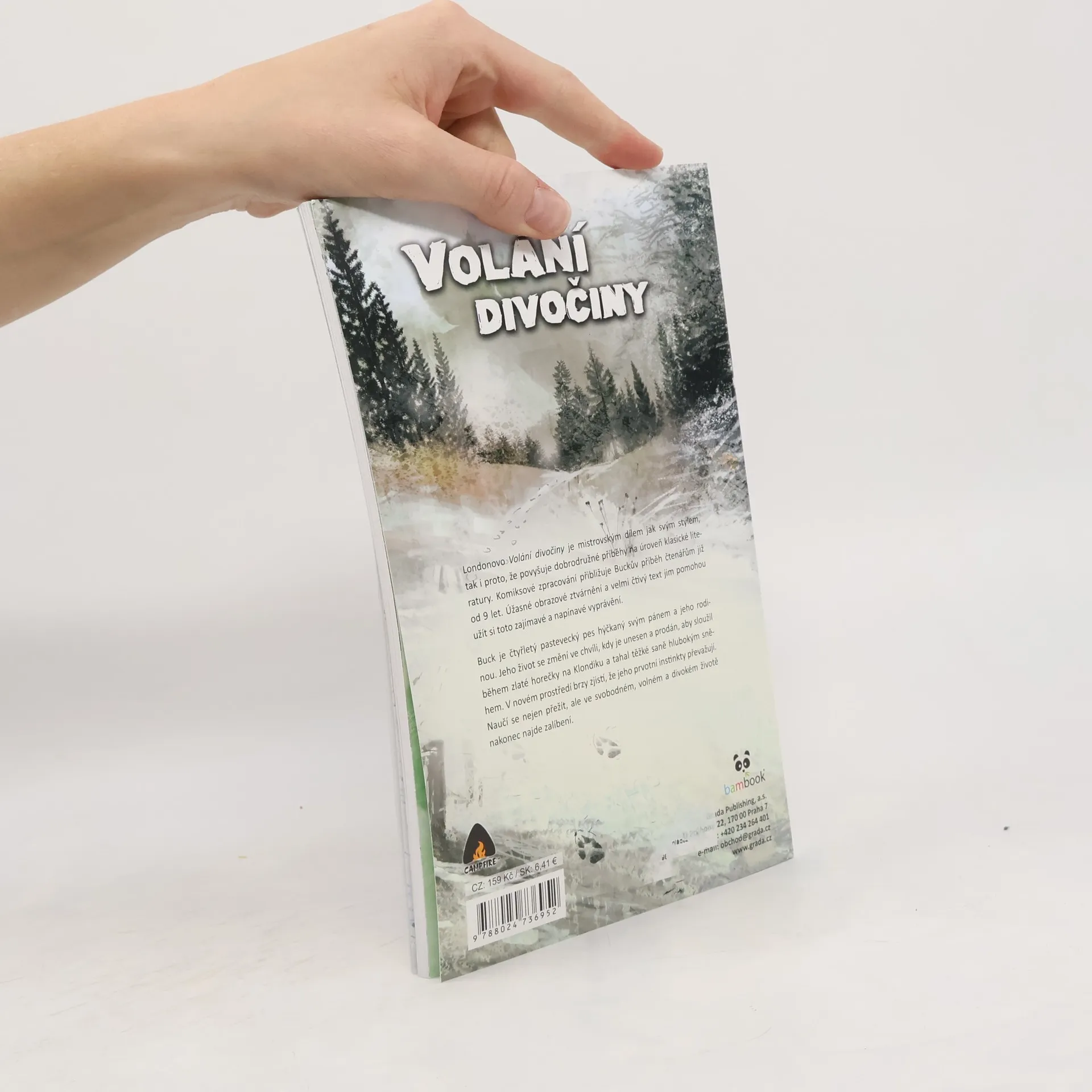 Londonovo Volání divočiny je mistrovským dílem jak svým stylem, tak i proto, že povyšuje dobrodružné příbehy na úroveň klasické literatury. Komiksové zpracování přibližuje Buckův příběh čtenářům již od 9 let. Úžasné obrazové ztvárnění a velmi čtivý text jim pomohou užít si toto zajímavé a napínavé vyprávění. Buck je čtyřletý pastevecký pes hýčkaný svým pánem a jeho rodinou. Jeho životse změní ve chvíly, kdy je unesen a prodán, aby služil během zlaté horečky na Klondiku a tahal těžké sáně hlubokým sněhem. V novém prostředí brzy zjistí, že jeho prvotní instinkty převažují. Naučí se nejen přežít, ale ve svobodném, volném a divoém životě nakonec najde zalíbení.