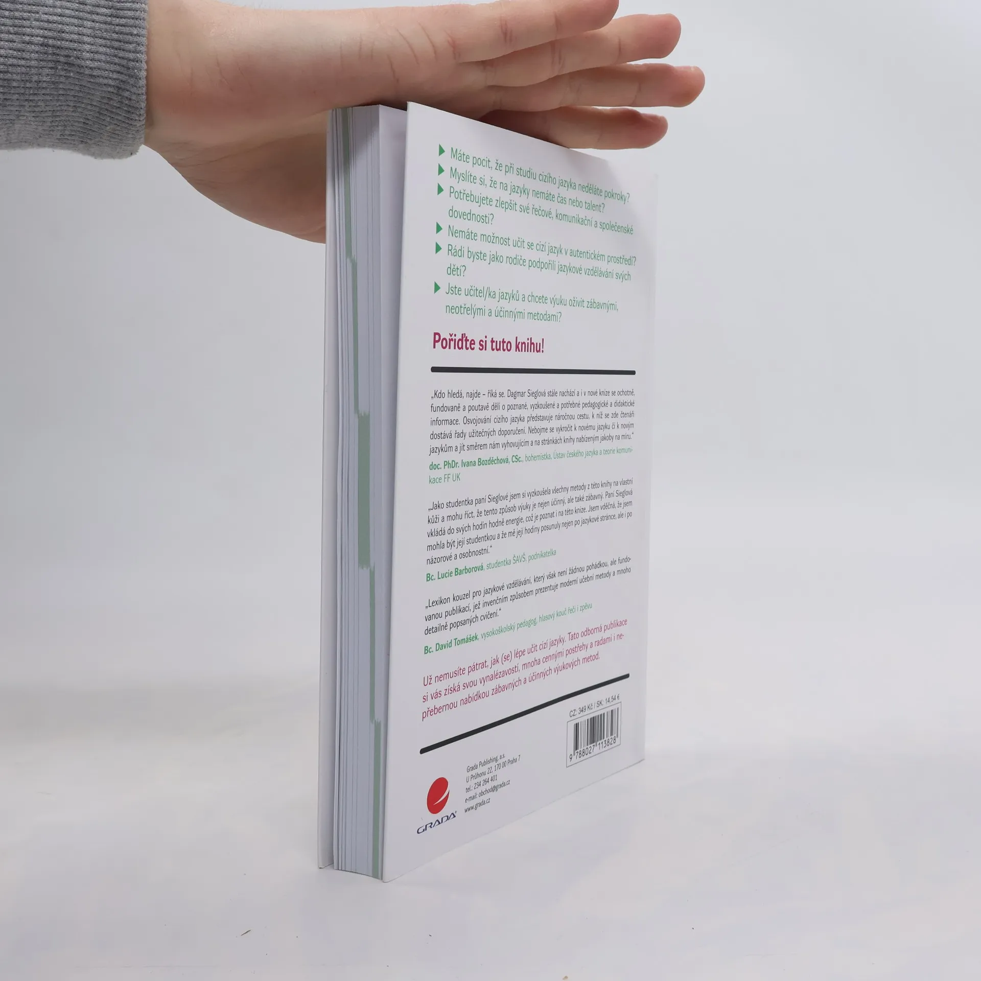 • Máte pocit, že při studiu cizího jazyka neděláte pokroky? • Myslíte si, že na jazyky nemáte čas nebo talent? • Potřebujete zlepšit své řečové, komunikační a společenské dovednosti? • Nemáte možnost učit se cizí jazyk v autentickém prostředí? • Rádi byste jako rodiče podpořili jazykové vzdělávání svých dětí? • Jste učitel/ka jazyků a chcete výuku oživit zábavnými, neotřelými a účinnými metodami? Už nemusíte pátrat, jak (se) lépe učit cizí jazyky. Tato odborná publikace si vás získá svou vynalézavostí, mnoha cennými postřehy a radami i nepřebernou nabídkou zábavných a účinných výukových metod. Pořiďte si tuto knihu!