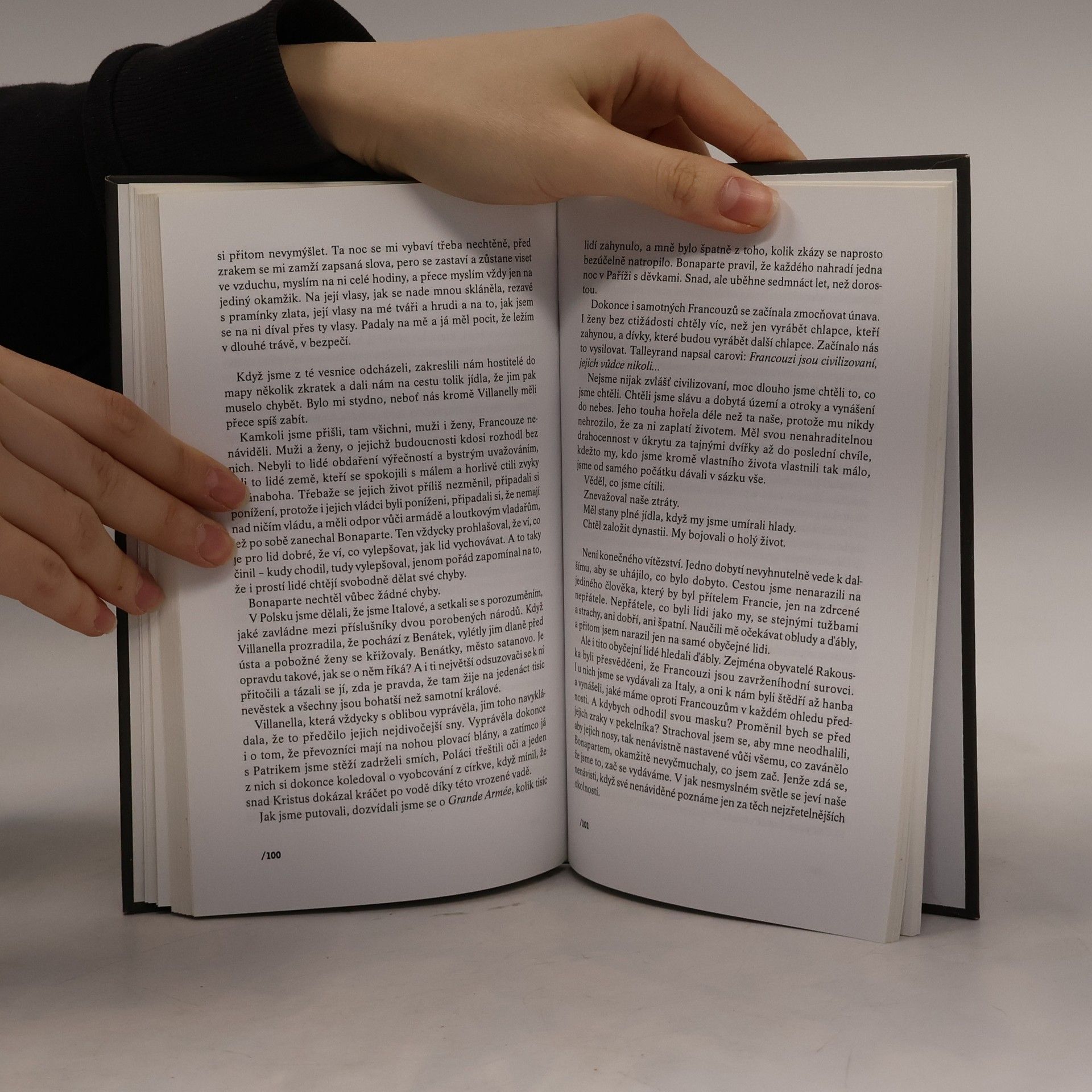 Ve své čtenářsky úspěšném románu rozehrává britská spisovatelka, která se našim čtenářům představila už svou prvotinou Na světě nejsou jen pomeranče, příběh z doby napoleonských válek. Prvním vypravěčem je mladý francouzský venkovan Henri, který nadšeně narukuje do Napoleonovy slavné armády, ale nestává se vojákem, nýbrž kuchařem a Napoleonovým pikolíkem. Druhým vypravěčem je pak svobodomyslná Benátčanka, převozníkova dcera Villanelle. Jejich životní pouti se za ruského tažení osudově protnou a mají svou dohru v Benátkách. Příběh nabývá místy rysů magického realismu.
