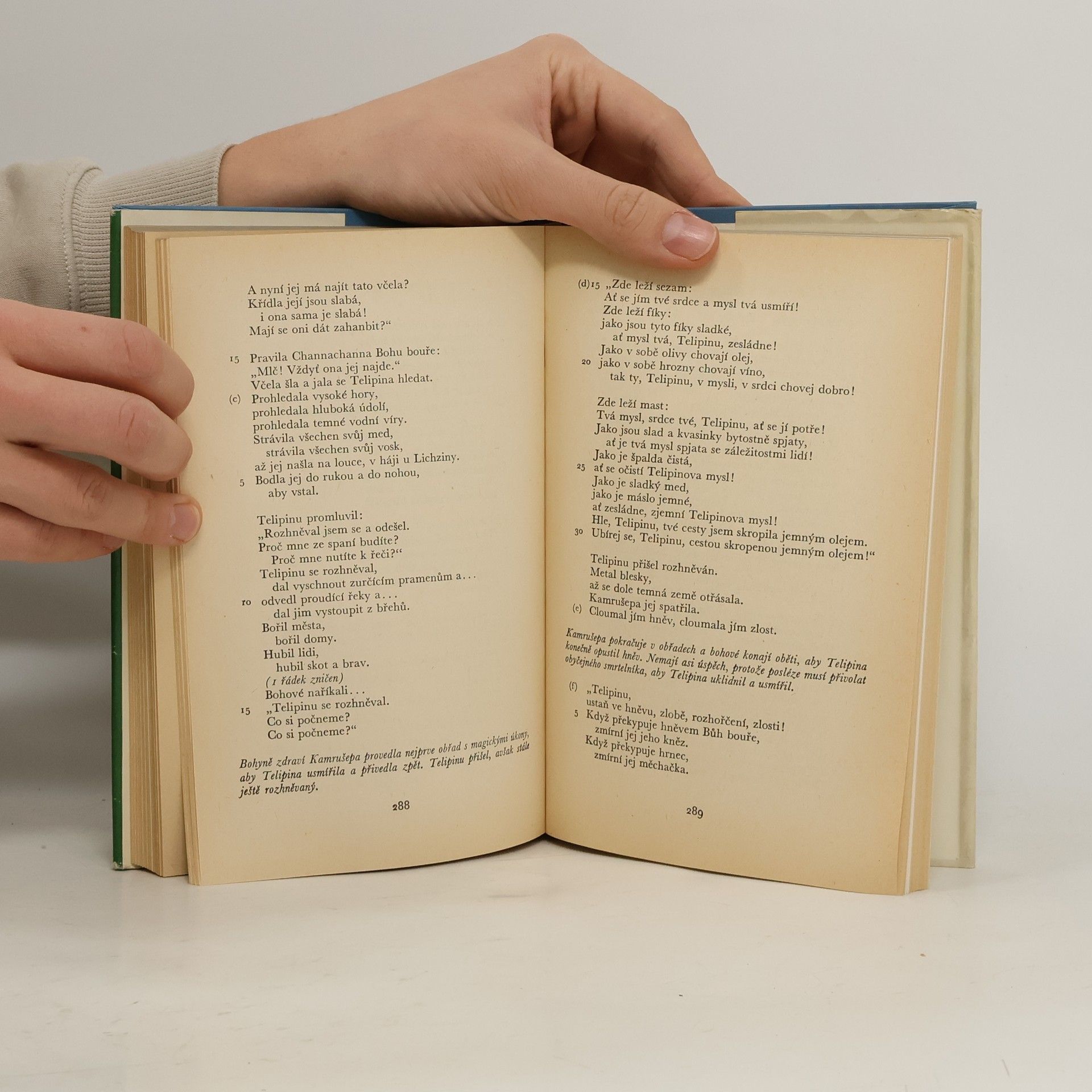 Výbor obsahuje jednak mytologické básně sumerské a akkadské, tj. mýty na území staré Mezopotámie, přinášející některé základní představy o řádu a uspořádání světa, o stvoření a údělu člověka, o podsvětí a posmrtném životě, ajednak mytologické básně chetitské, tj. mýty naúzemí starověké Chetitské říše v Malé Asii, do nichž mezopotamské prvky pronikaly.